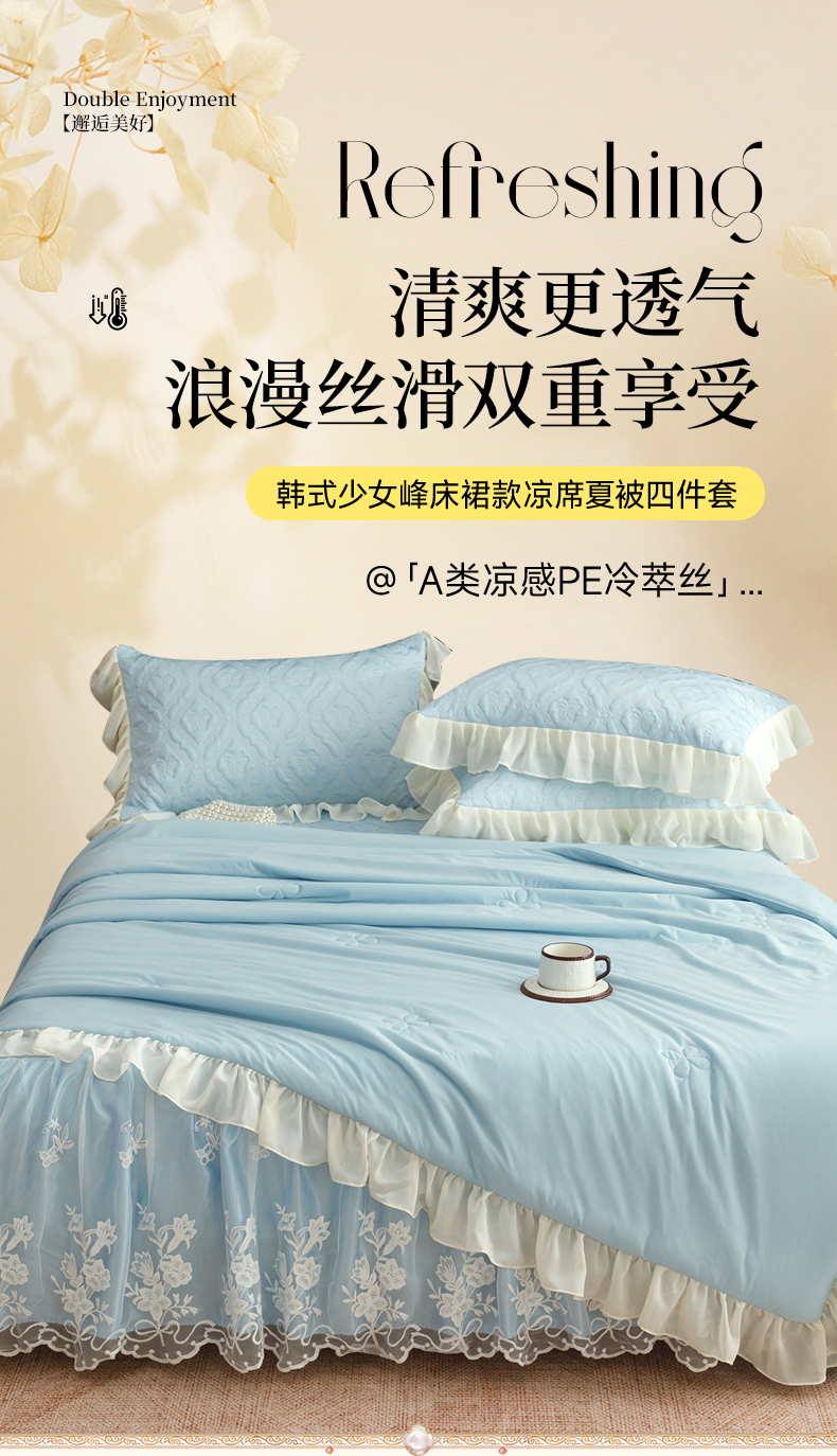(总)好儿喜家纺 2026新款软凉席空调软席乙纶凉席床裙可机洗夏被夏凉被空调被四件套-蝶语系列