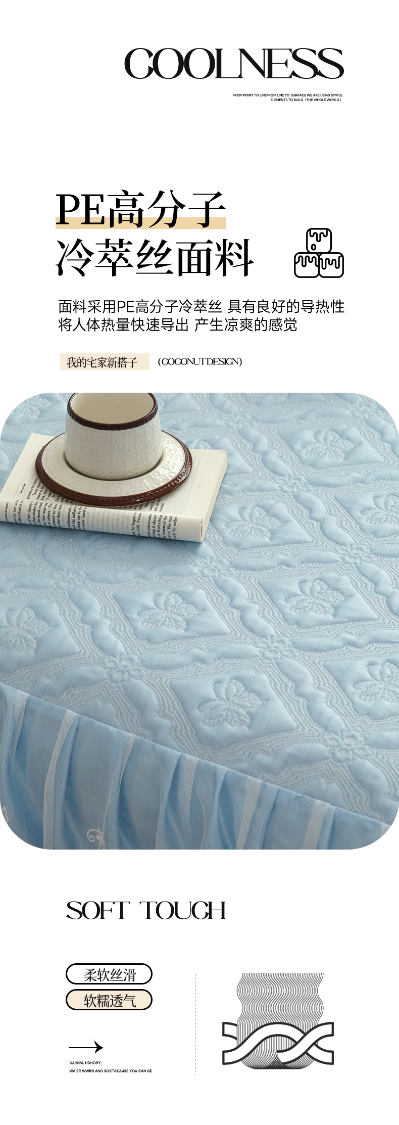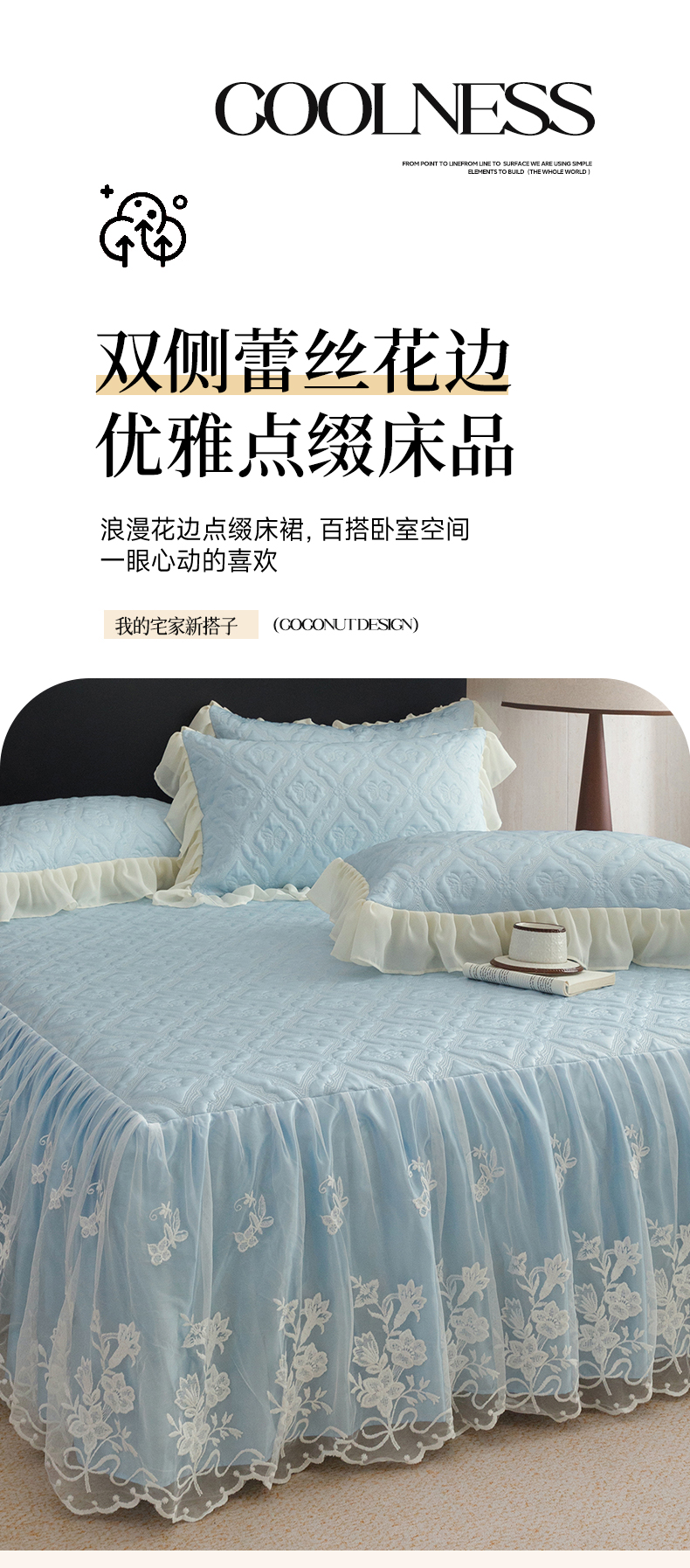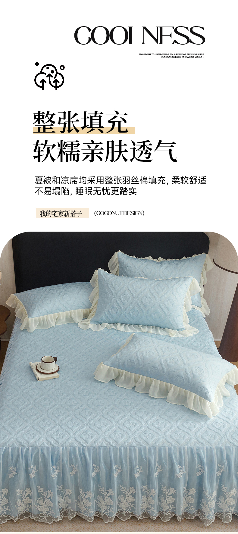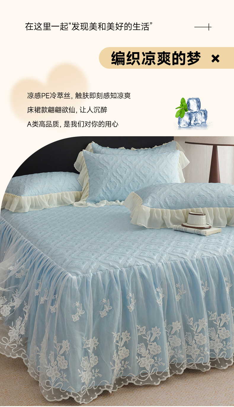 (总)好儿喜家纺 2024新款伊芙琳凉席床裙三件套,浅绿,橄榄绿,奶白,浅粉,浅蓝