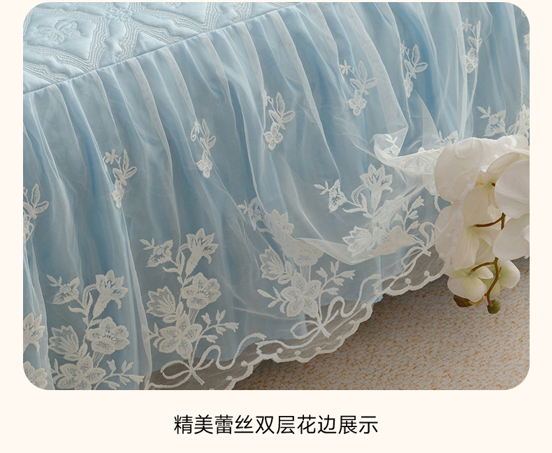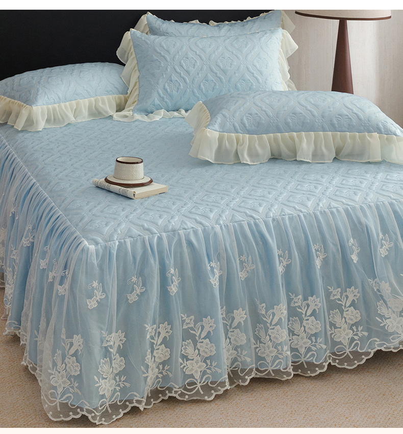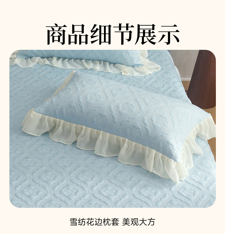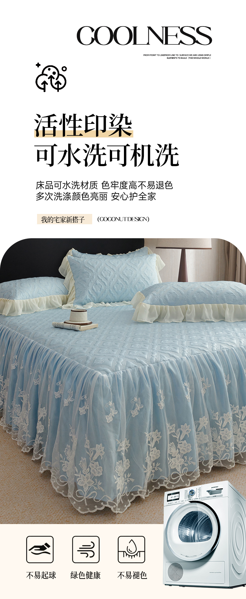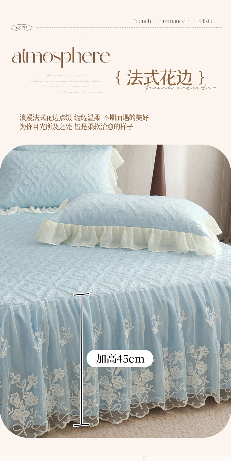 (总)好儿喜家纺 2024新款伊芙琳凉席床裙三件套,浅绿,橄榄绿,奶白,浅粉,浅蓝