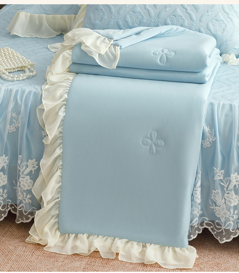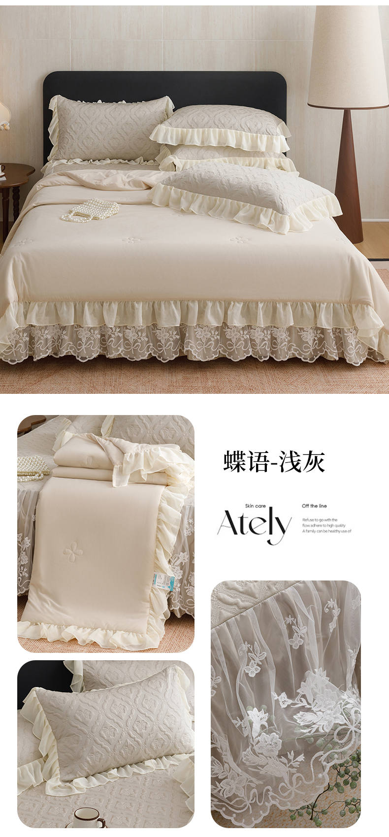 (总)好儿喜家纺 2026新款夏季夏被四件套乳胶床裙款-雅颂系列,雅颂-宾利蓝,雅颂-果绿,雅颂-奶白,雅颂-浅粉,雅颂-浅灰,雅颂-浅紫