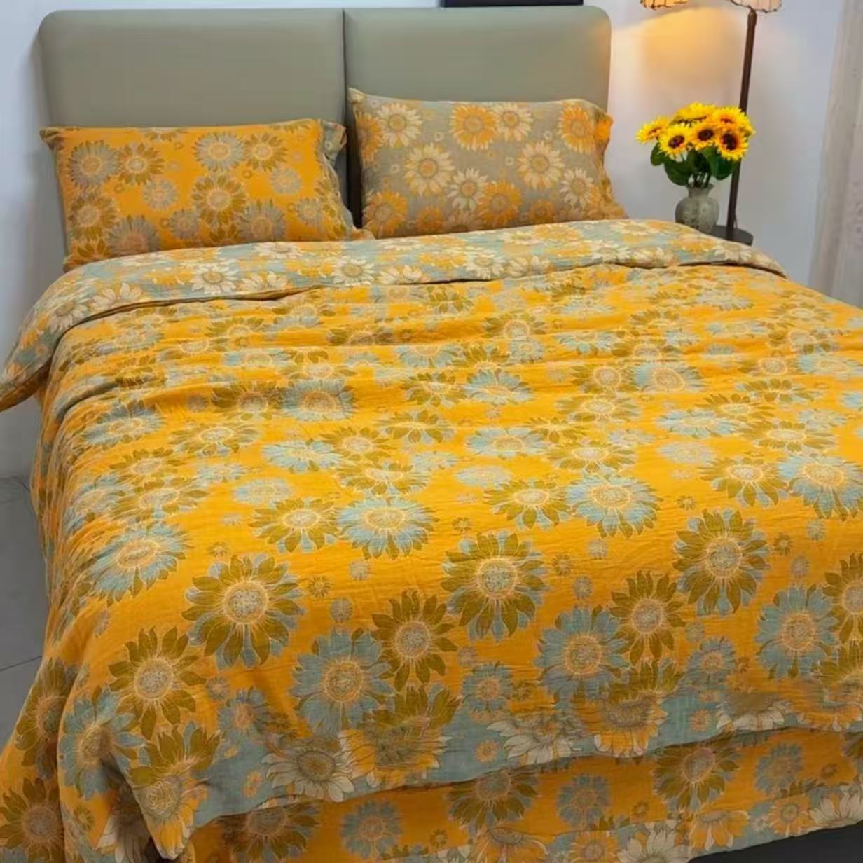 (总)禧多家纺 2026新款亲肤舒适双层纱四件套,小葵花,花好月圆