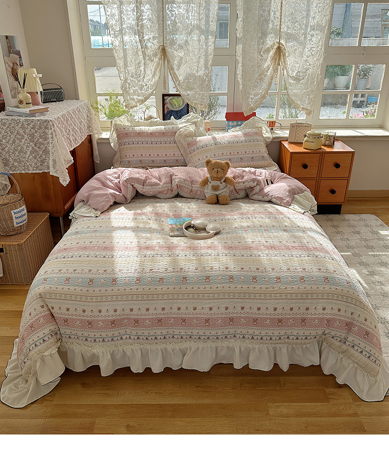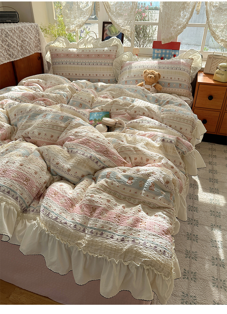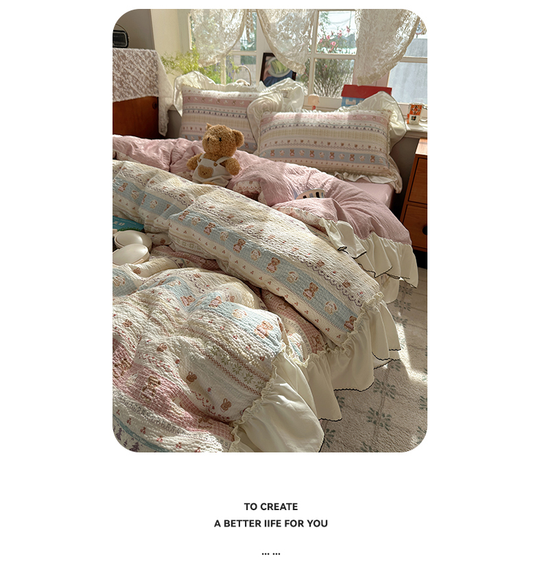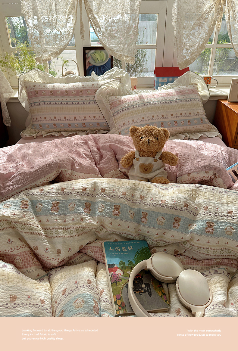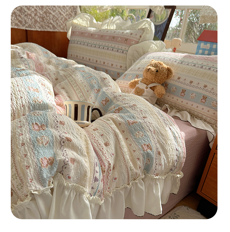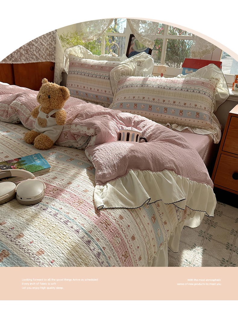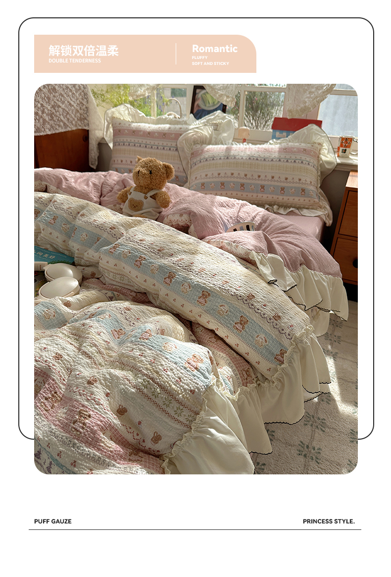 当前位置: 91家纺网 > 商品网购 > 床品套件 > 四件套 > 化纤普通四件套 > 凯洛奇 2026新款公主风云感泡芙纱花边款四件套 软萌熊