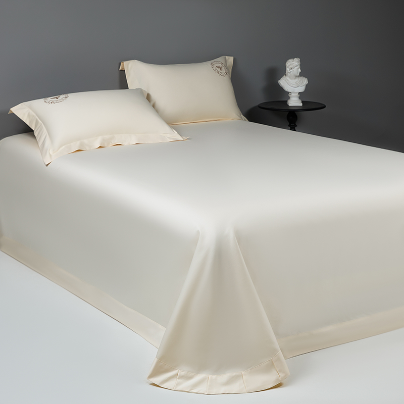 莉迪娅 2026新款50s双股长绒棉纯色简约绣花床单三件套--小蜜蜂系列 珍珠白