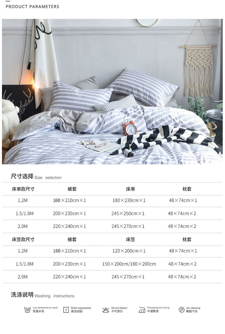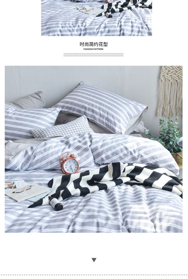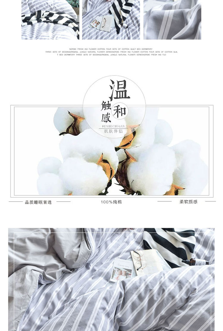 (总)梦家居 2024新款全棉13372简约小清新四件套,彩虹条纹,墨竹—黑色,墨竹—米色