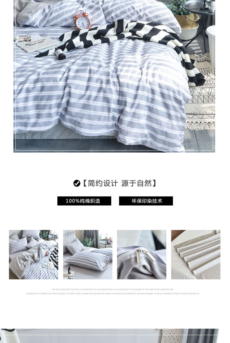 (总)梦家居 2024新款13372全棉简约风系列四件套,摩卡宽条,梦幻森林,米黑条