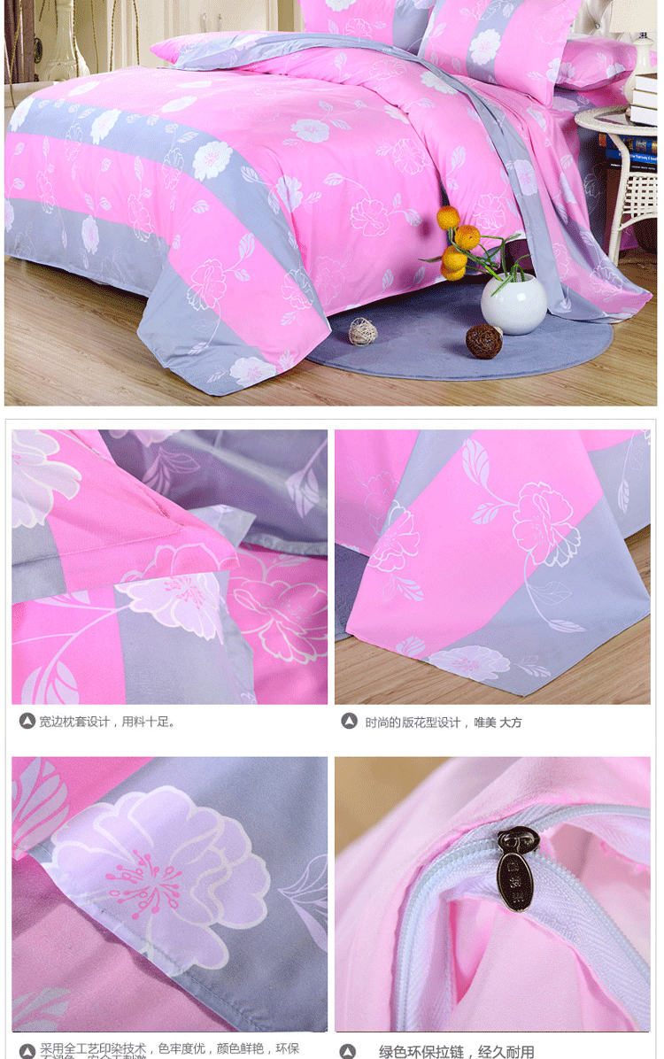 (总)百花王2022新款全棉绣花四件套,时尚粉色,时尚深灰色