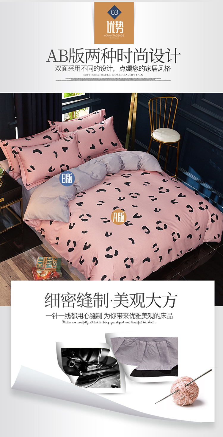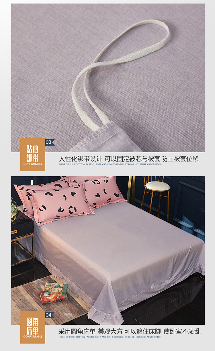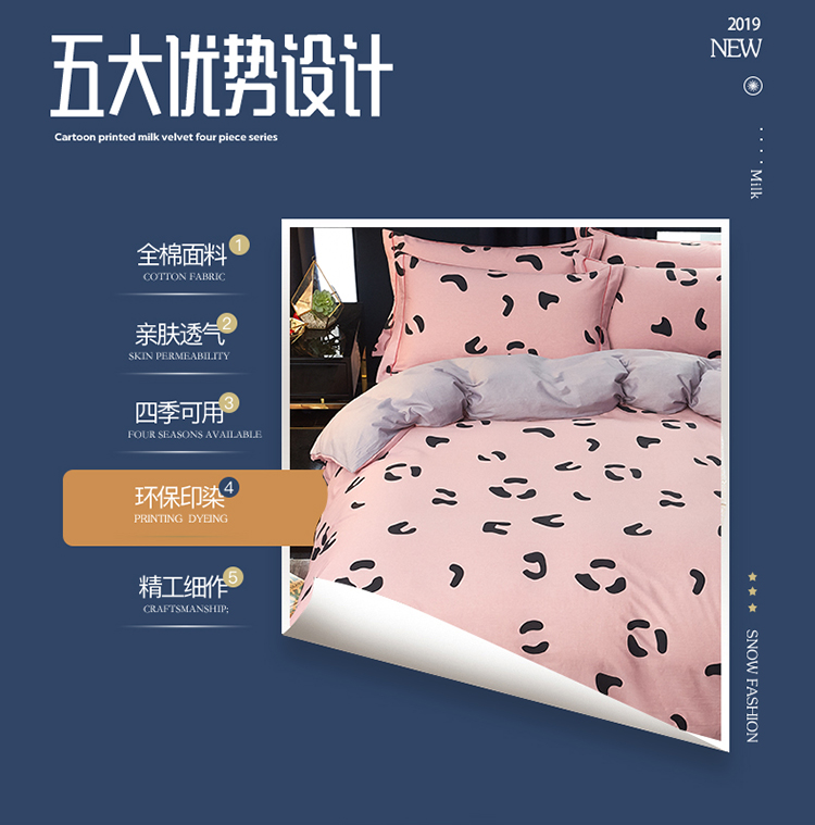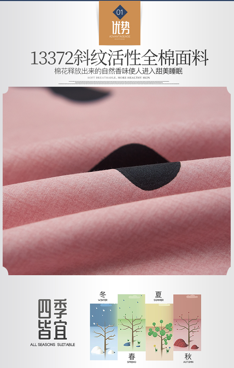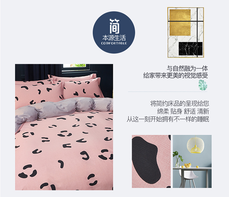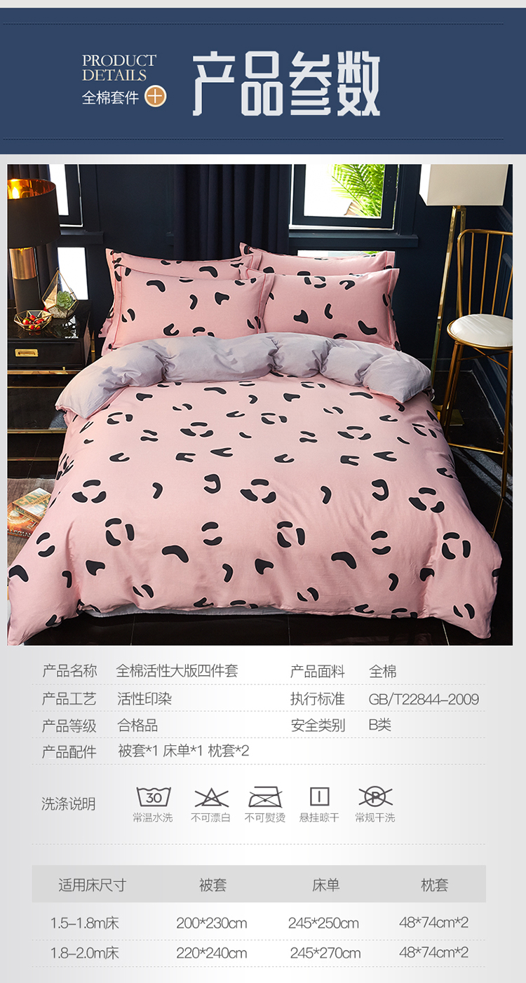 商品名称:雲归梦 2019全棉活性大版简约卡通风格四件套 小恋曲粉