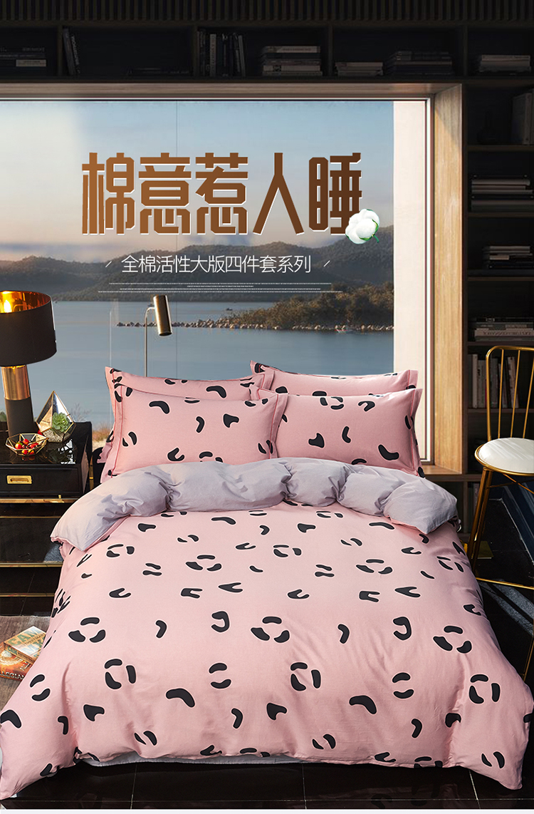 雲归梦 2019全棉活性大版简约卡通风格四件套 小恋曲粉