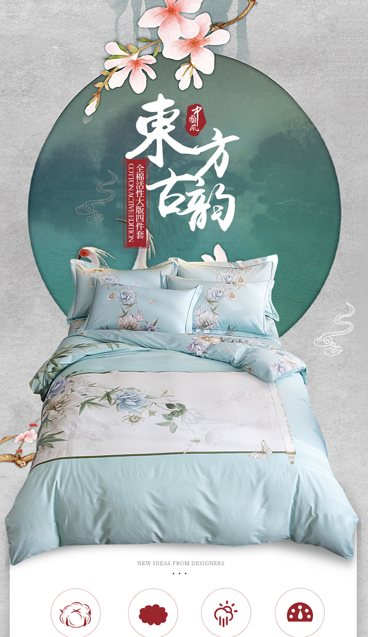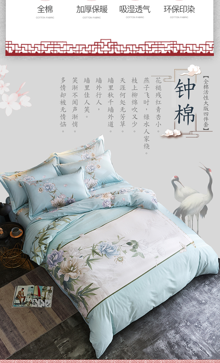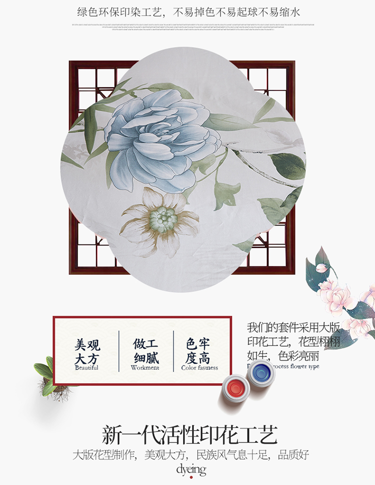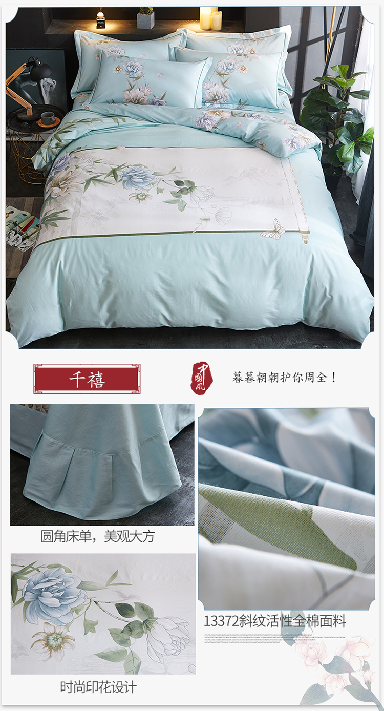 商品名称:雲归梦 2019全棉活性大版中国风花卉四件套 千禧