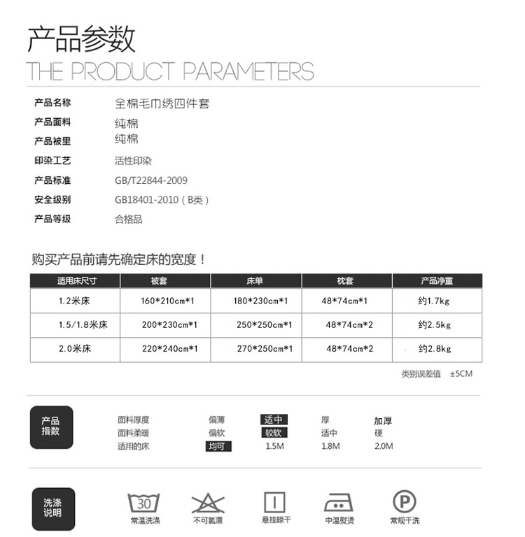 加大号155元:被套220*240cm*1,床单270*250cm*1,枕套48*75cm*2。