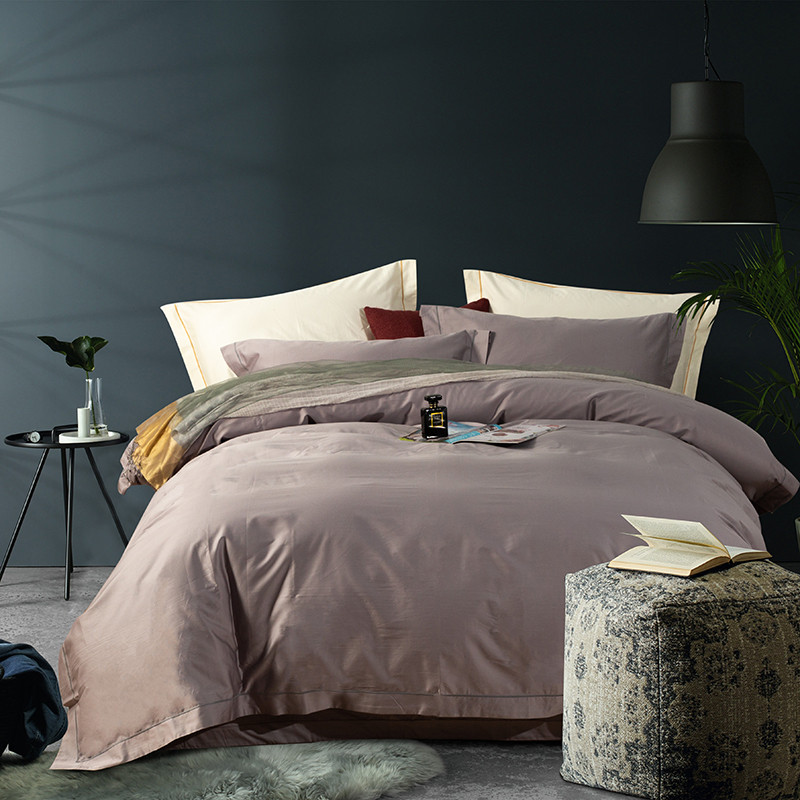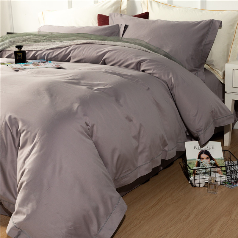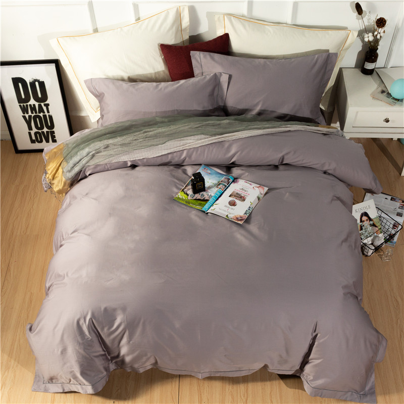玖玖爱 2019新款100支长绒棉纯色四件套 棕灰色