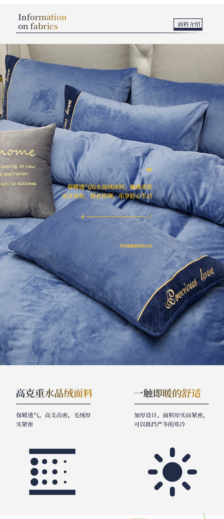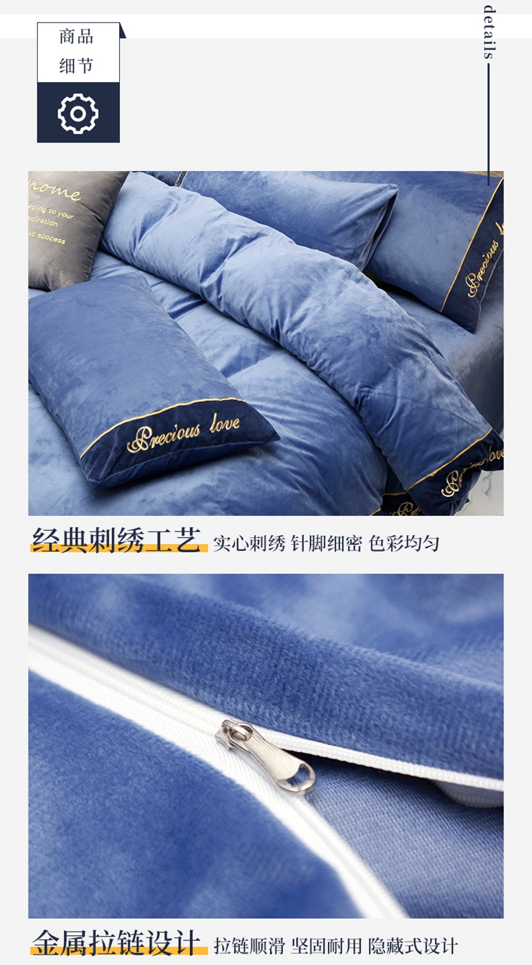 商品名称:米奈 水晶绒绣花贴边挚爱系列法莱绒四件套 蓝色