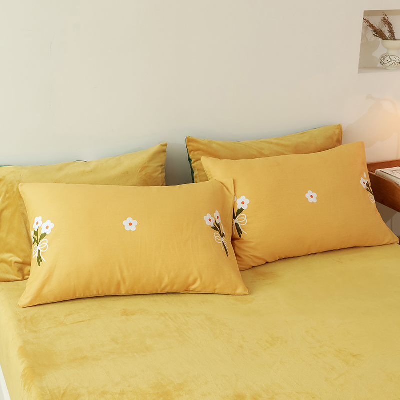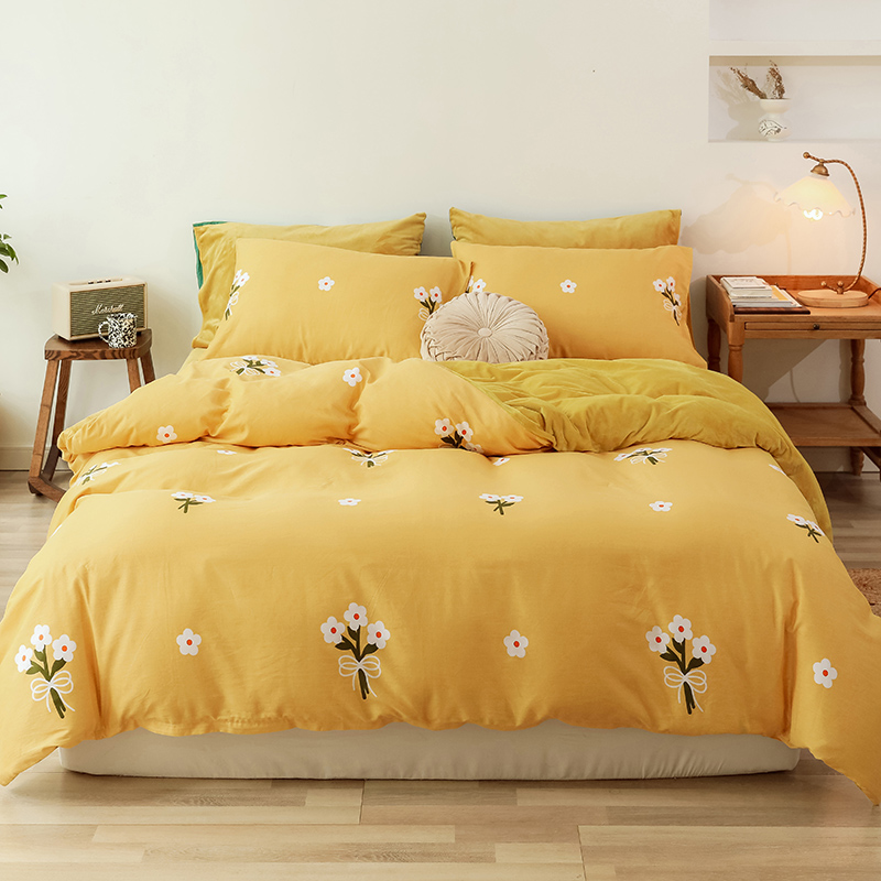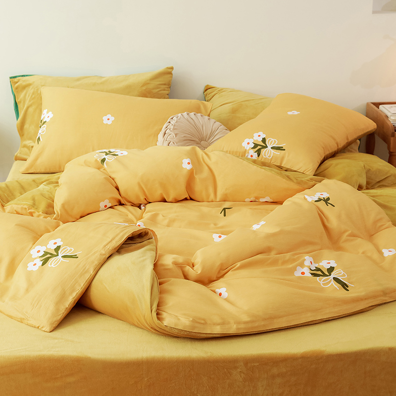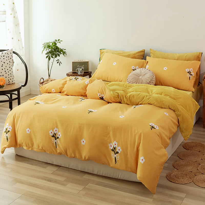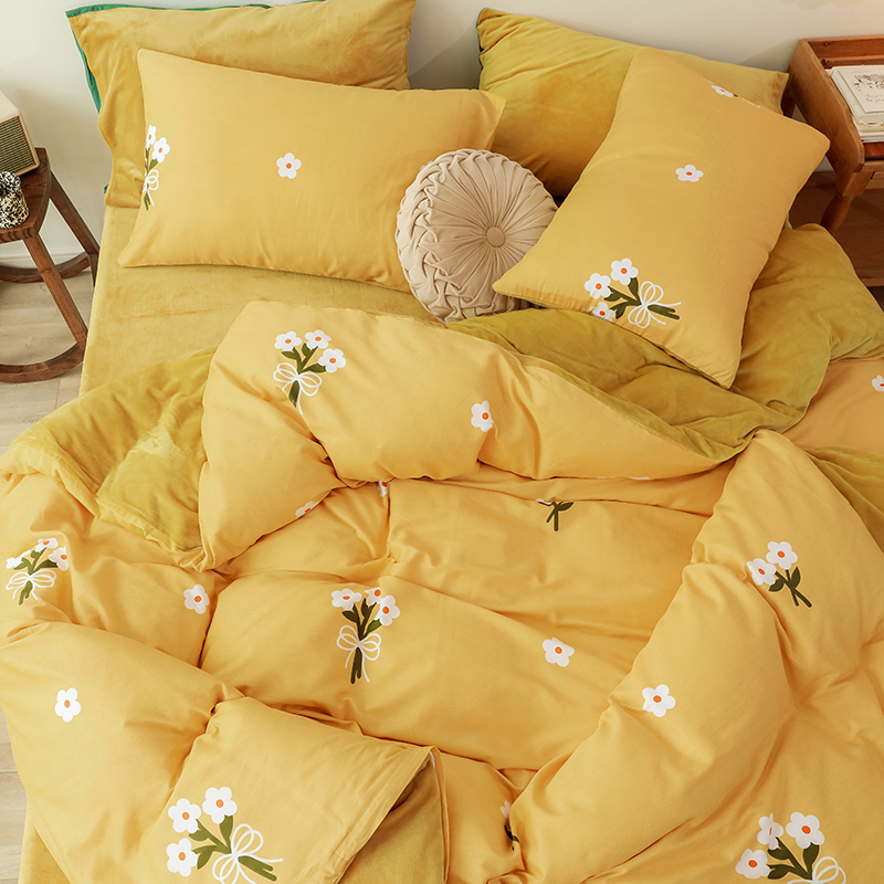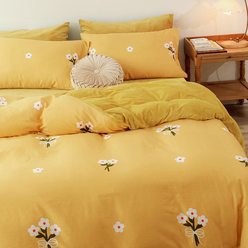 商品名称:昔可 2019新款13372棉加绒花卉系列四件套 雏菊-黄
