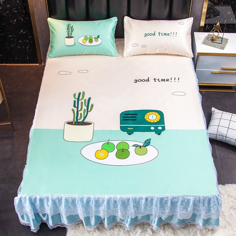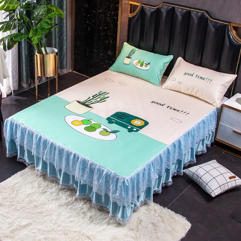 纽缦 2020新款冰丝大版床裙三件套 清新小资