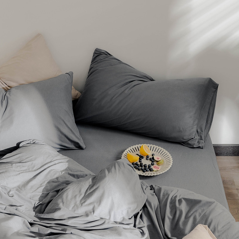 (总)华超针织 2021新款天竺棉魔方格四件套,魔方格姜黄,魔方格奶茶,魔方格南瓜,魔方格深灰,魔方格紫粉