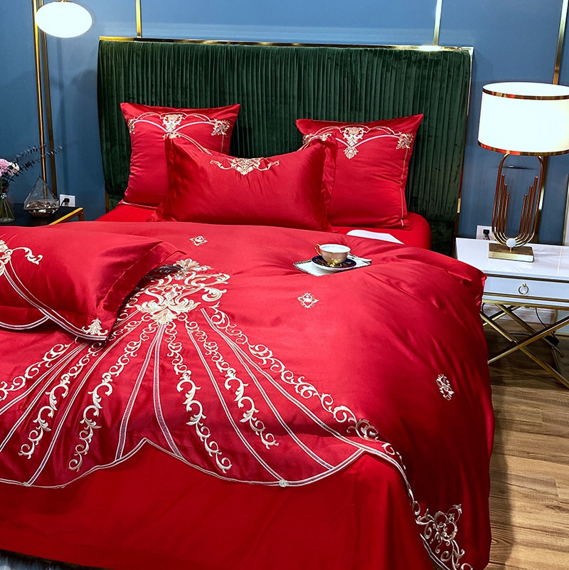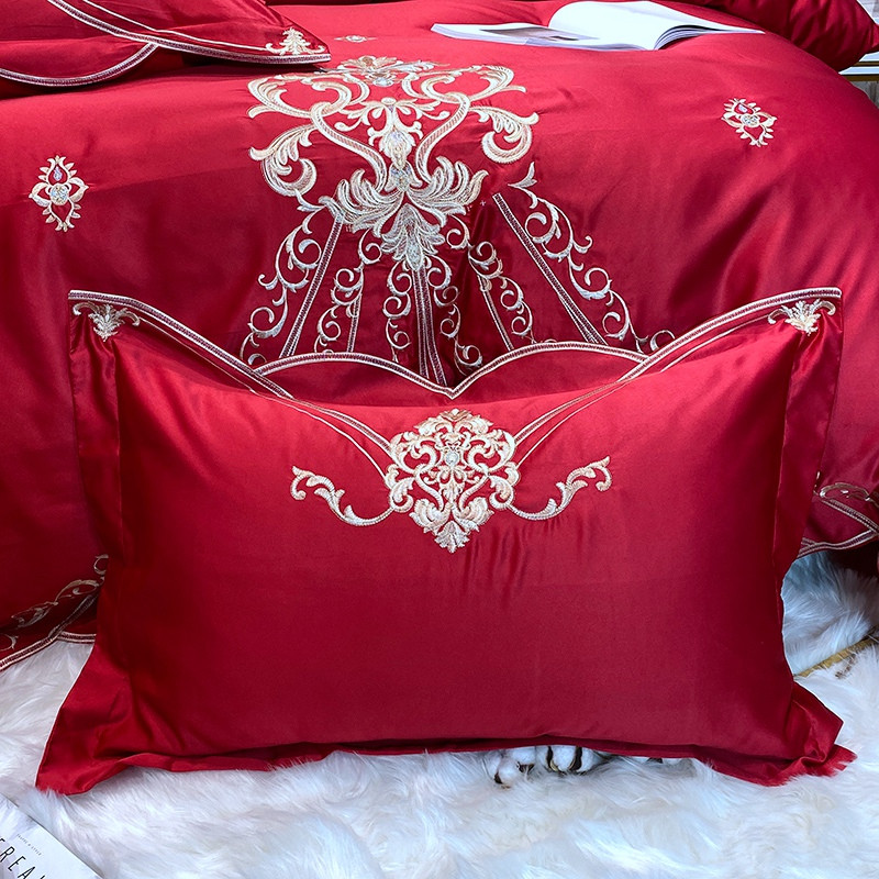 商品名称:宅家居60支贡缎真臻品丝B版纯棉刺绣卡瑞娜四件套实拍 卡瑞娜 -玫瑰红