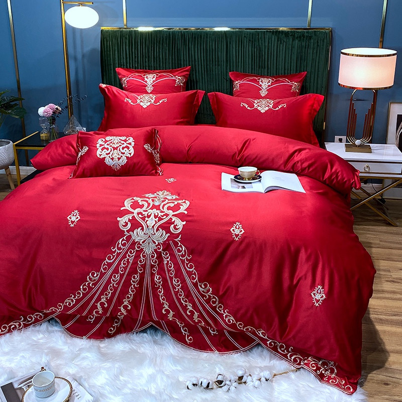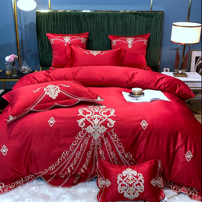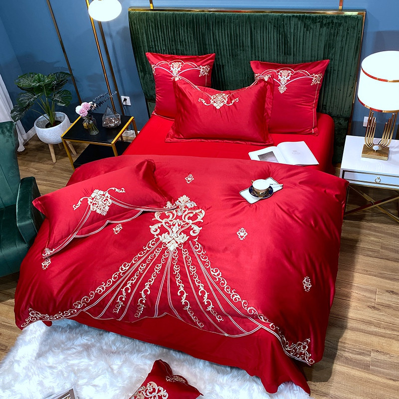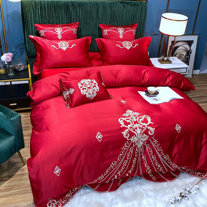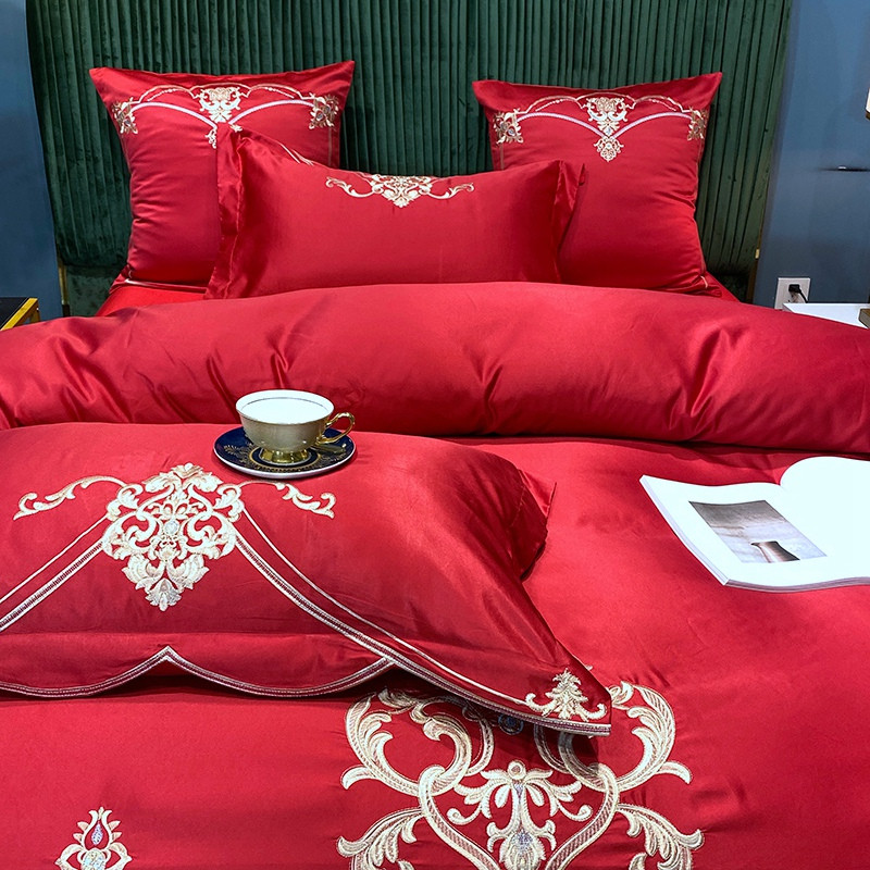 宅家居60支贡缎真臻品丝B版纯棉刺绣卡瑞娜四件套实拍 卡瑞娜 -玫瑰红