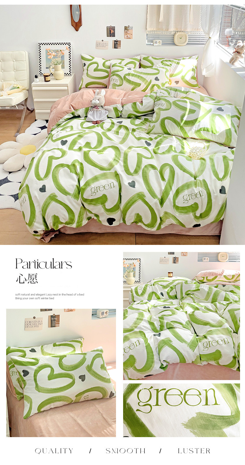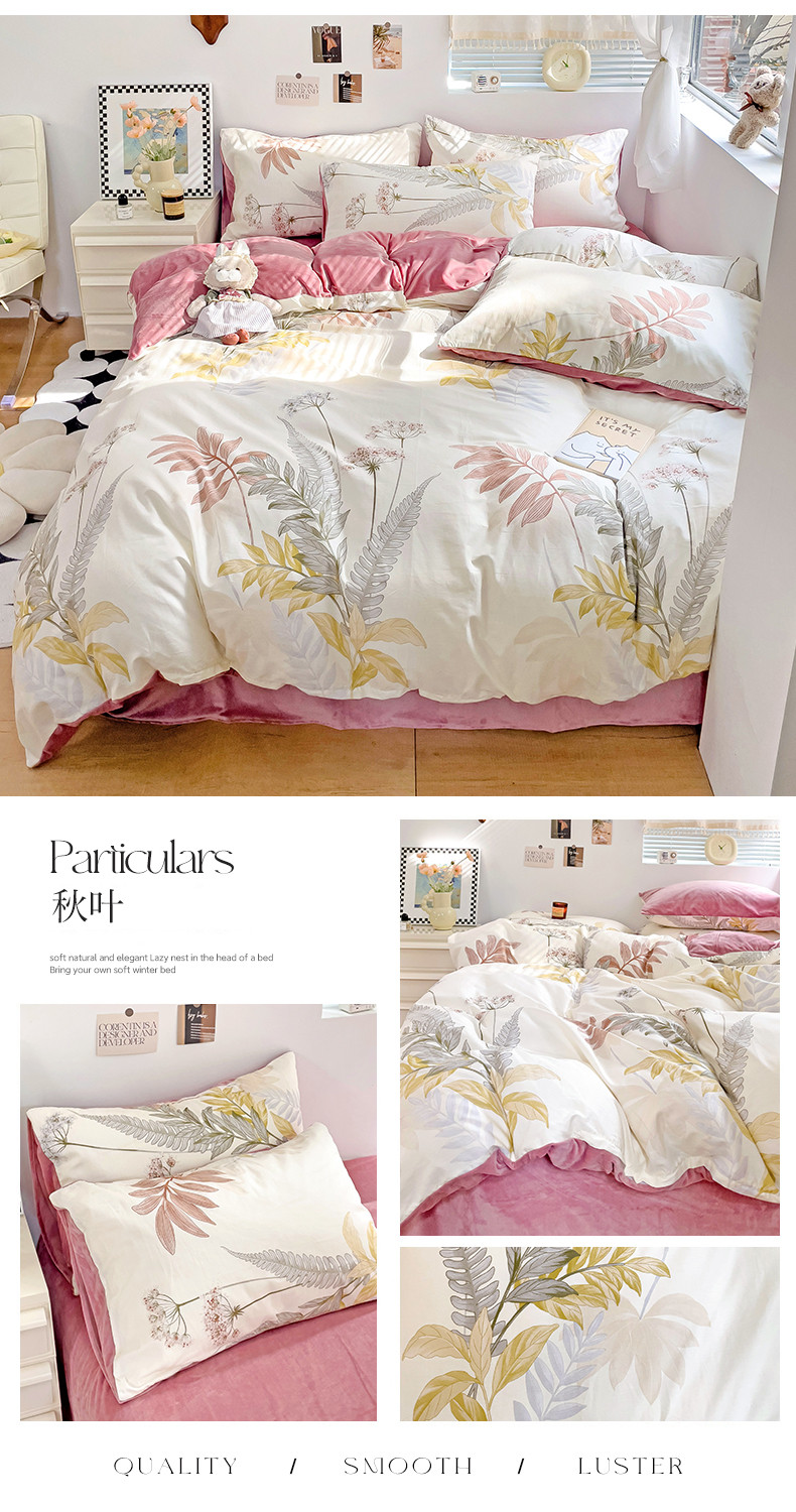 (总)盛馨2023新款全棉印花13372系列四件套,粉红浪漫粉,蜜语花香黄,慕斯言,四叶草,甜橘,幸福花语绿