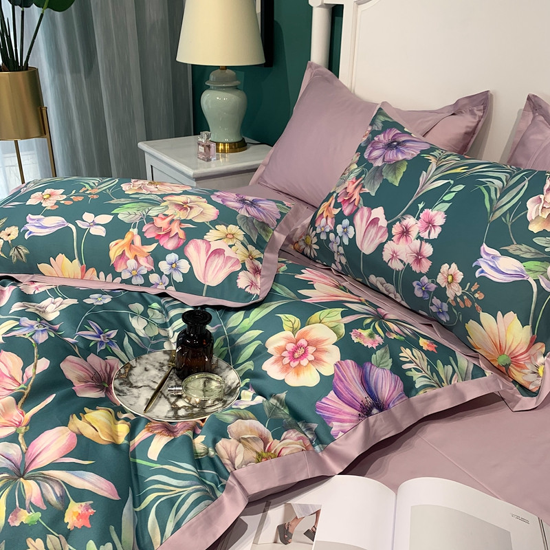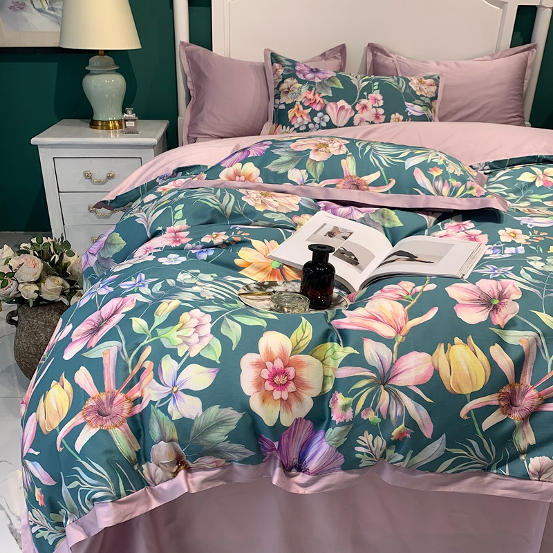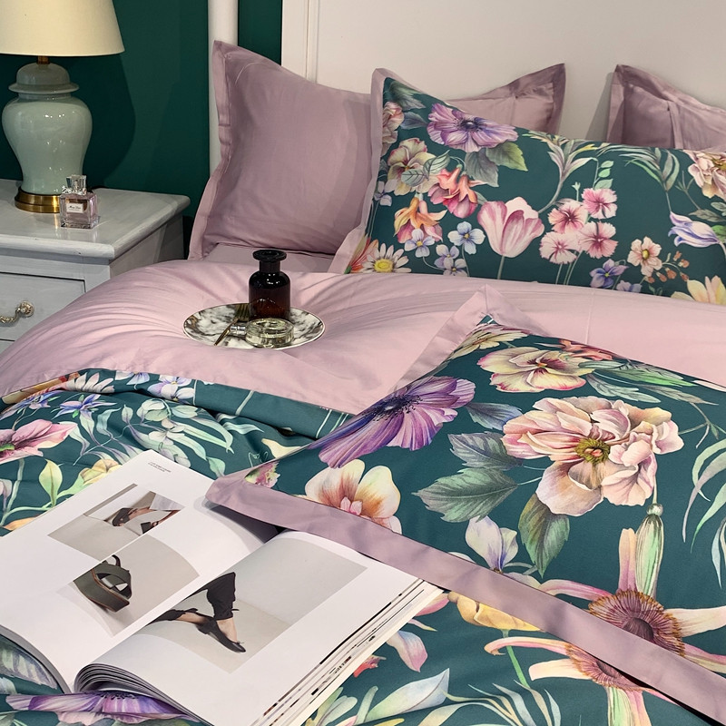 (总)太古汇家居 2025新款活性数码印花四件套,丽奥娜-松石绿,丽奥娜-杏子灰,丽奥娜-樱落紫,莉安娜-粉,莉安娜-卡其,莉安娜-绿,西莉娅-淡紫,西莉娅-粉色