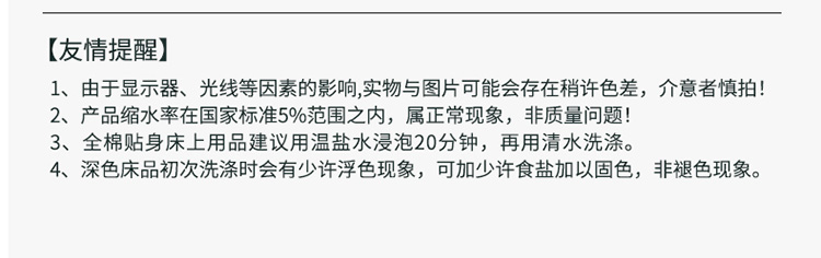 3、通州区市场监督局友情提醒,近期涉及到床上用品不褪色不掉毛不缩水的投诉和以世界知名品牌图案为面料的床品举报较多。请各商家自检自查,对照整改或进行下架处理。