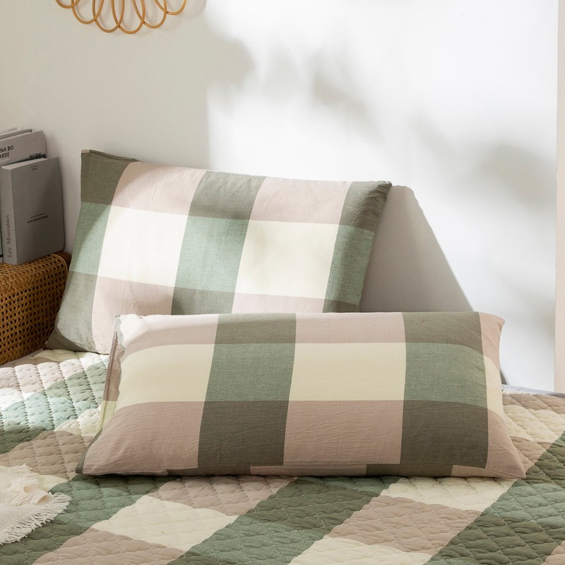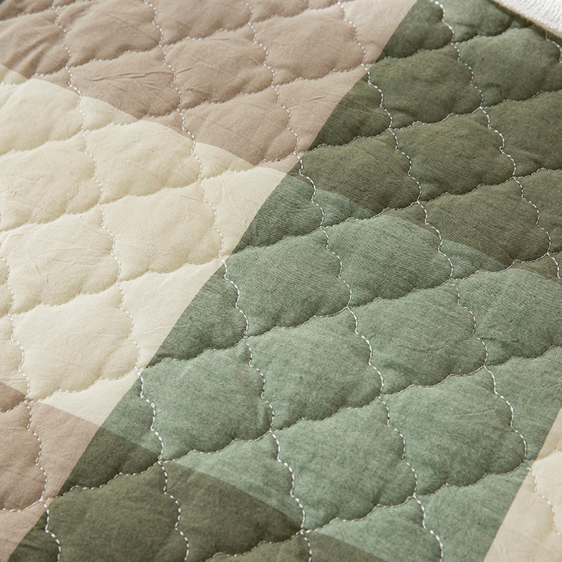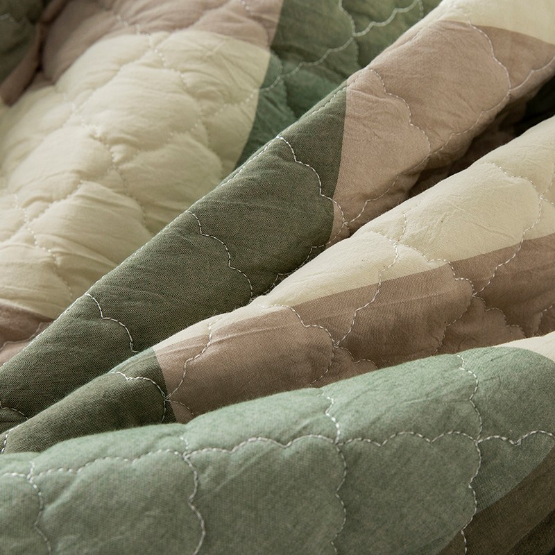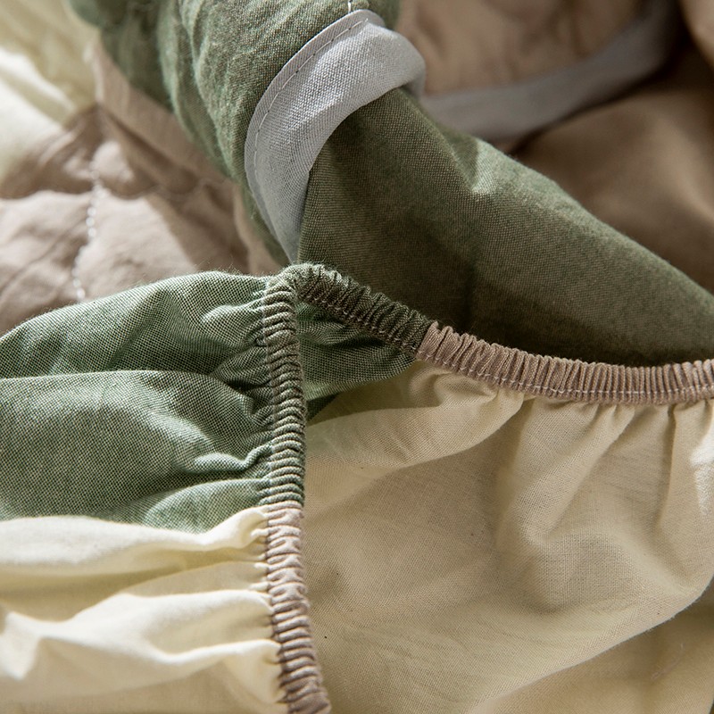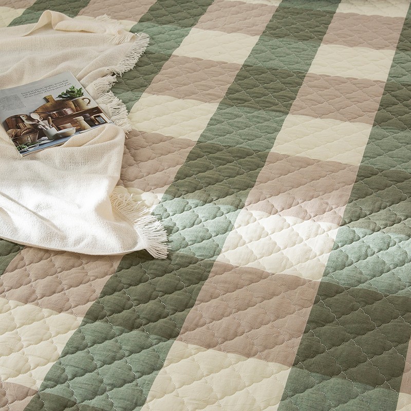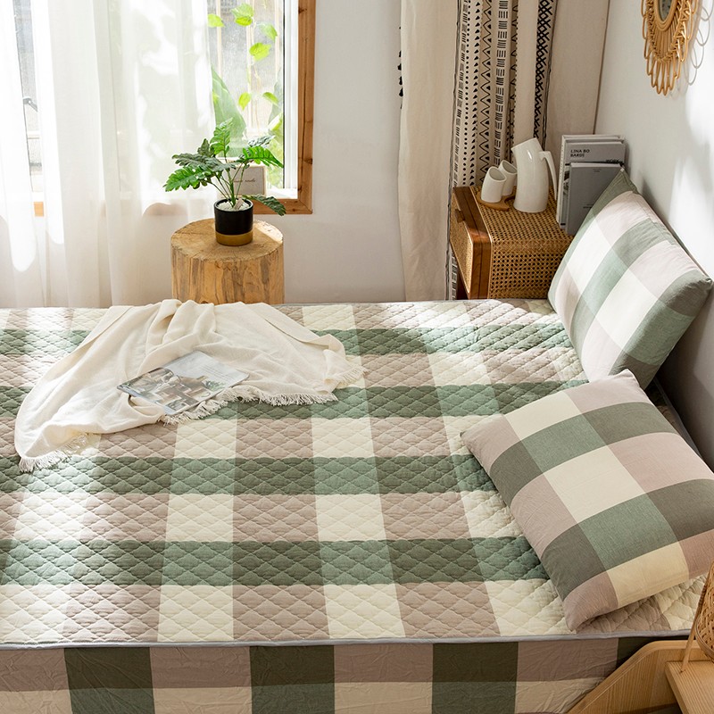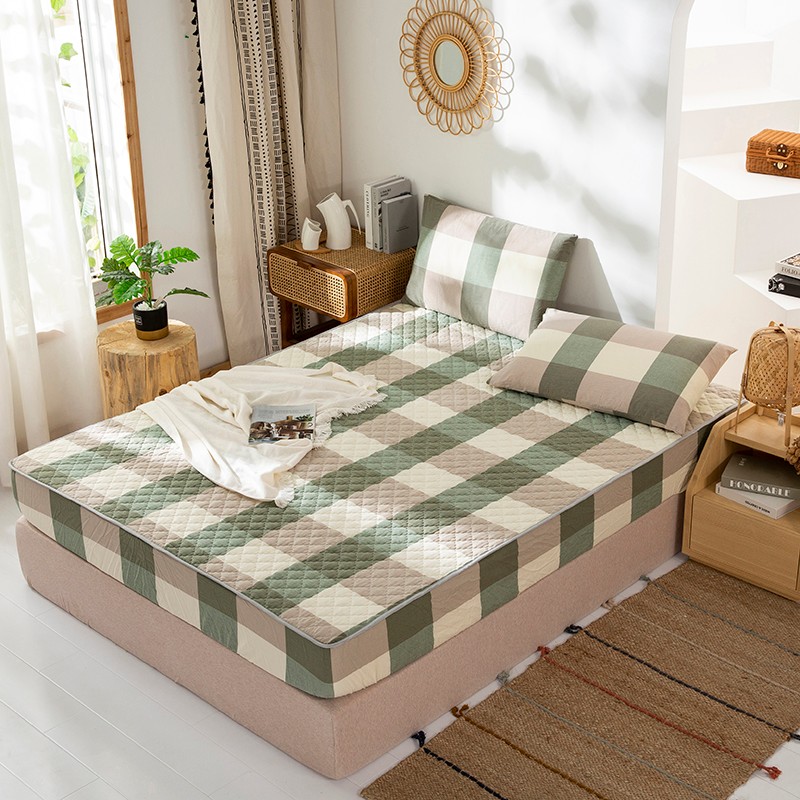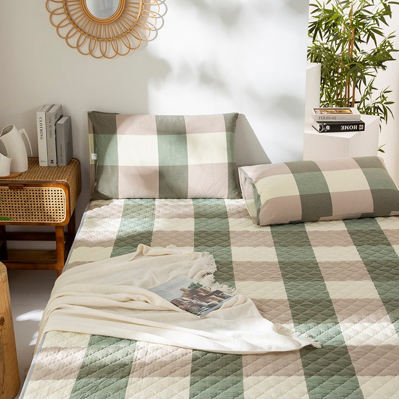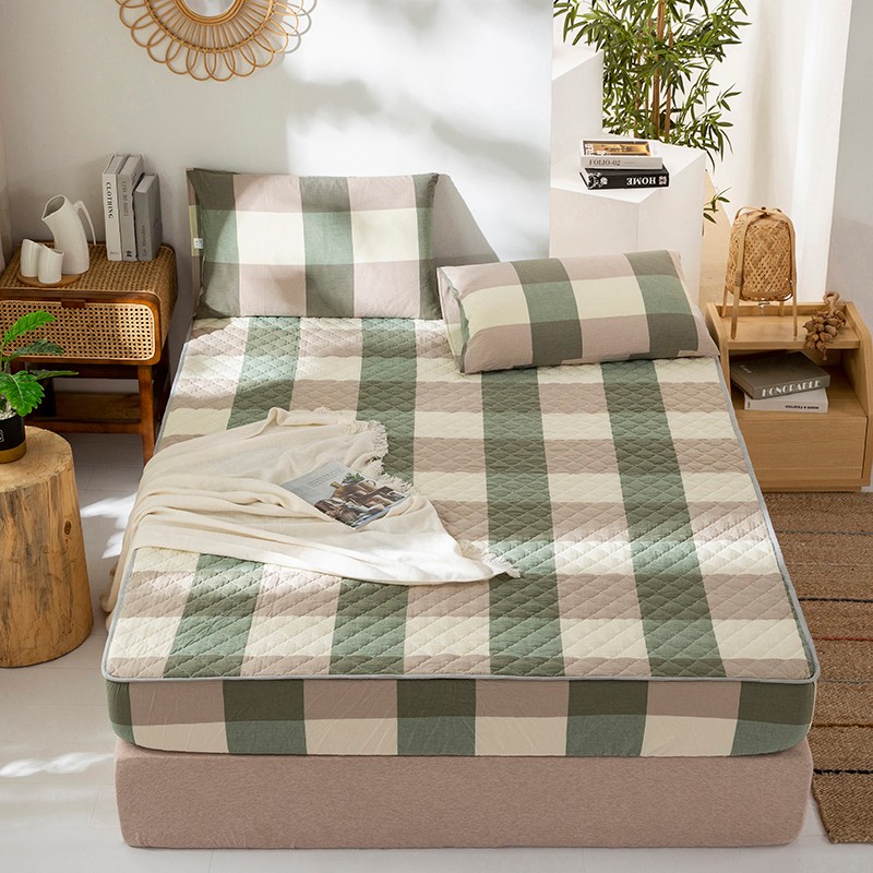久典 2023新款全棉色织水洗棉夹棉床笠 绿大格