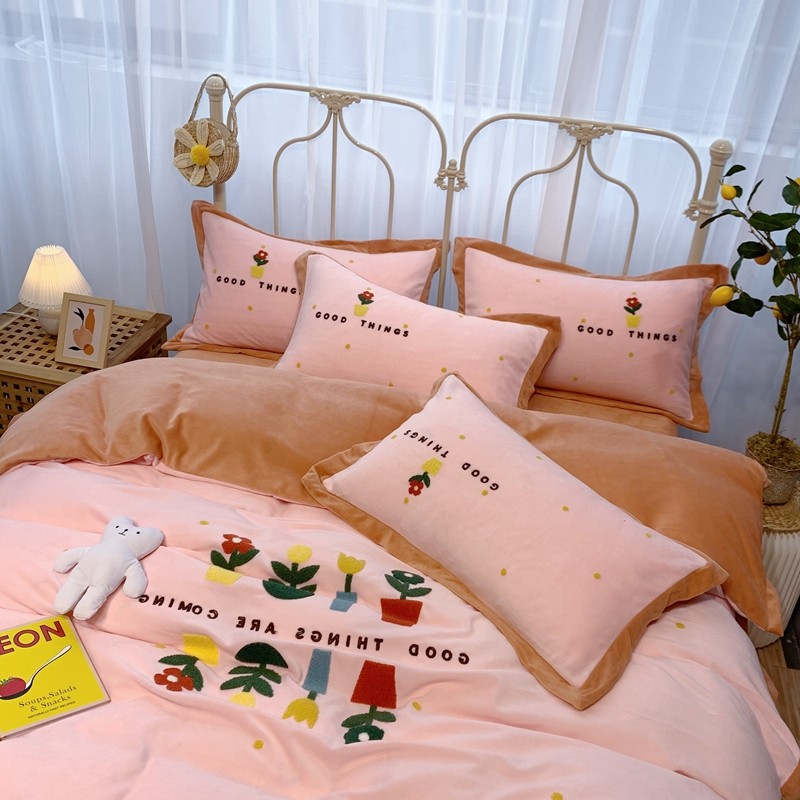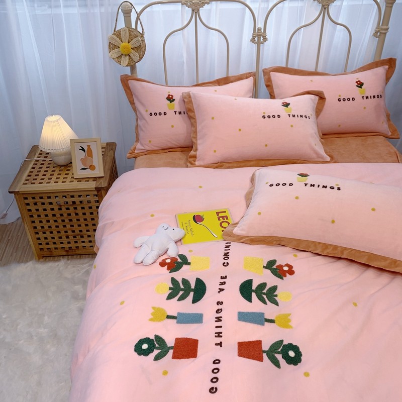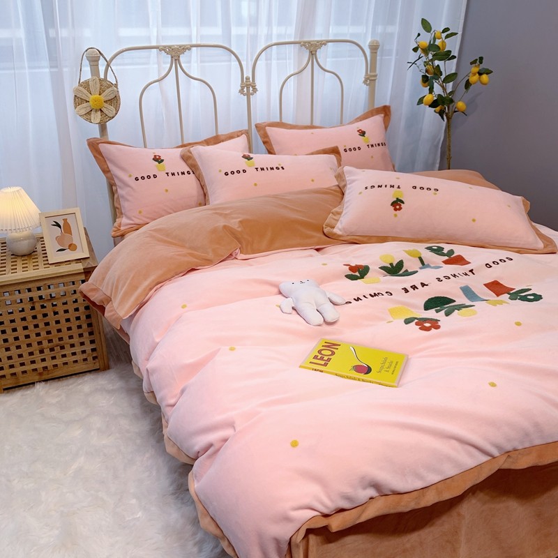 馨蕊家居 2021新款秋冬轻奢煦暖绒四件套 蜜可-仙女粉