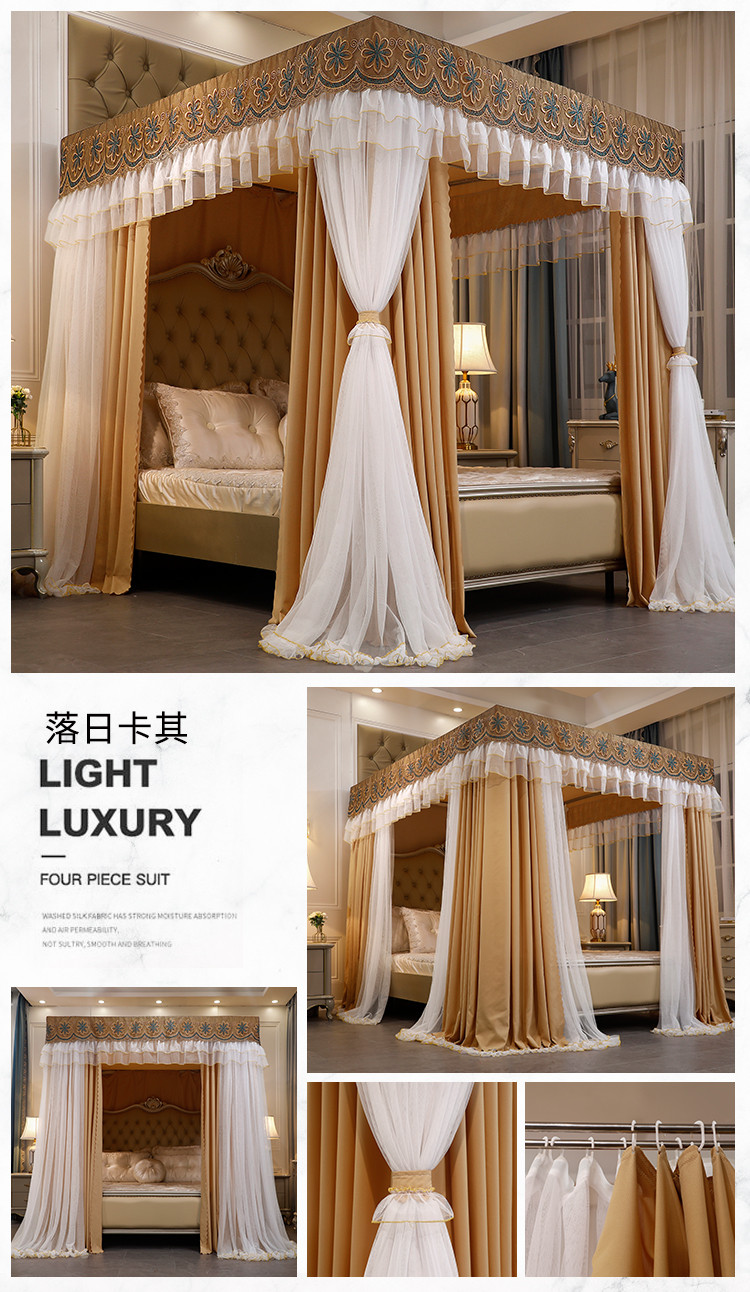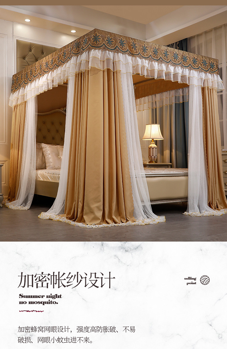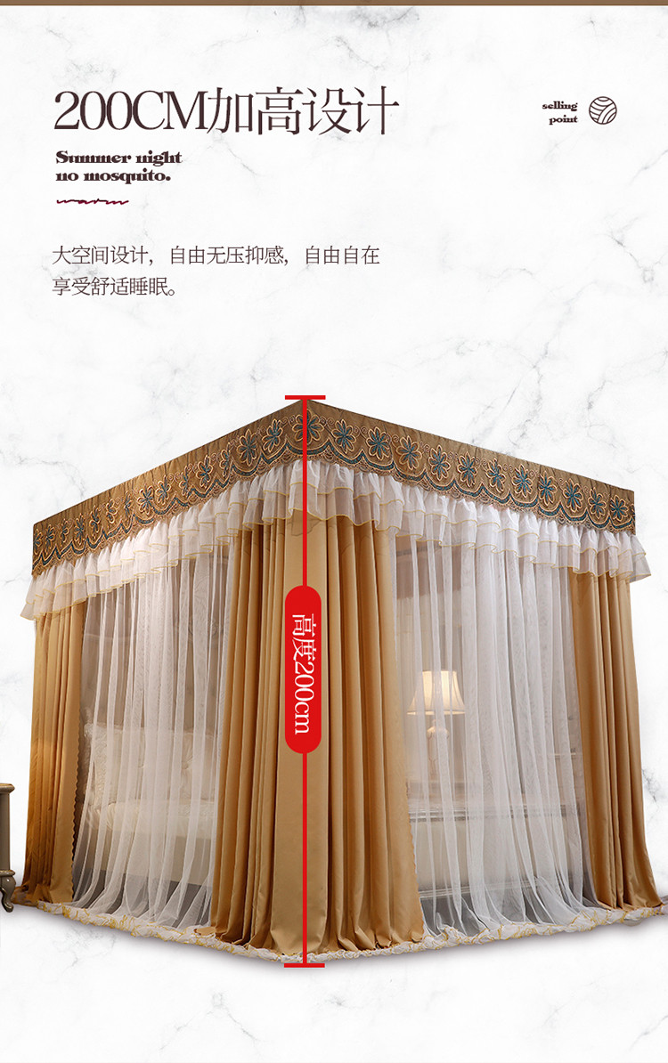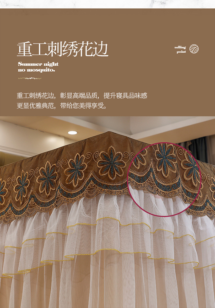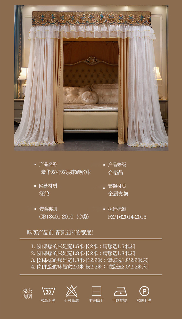 商品名称:艾晶美家纺 2021新款四季款豪华双杆双层蚊帐床幔 落日卡其