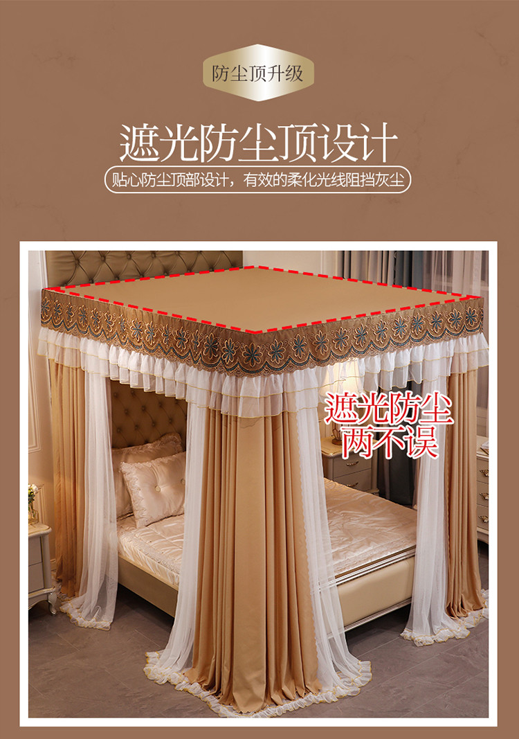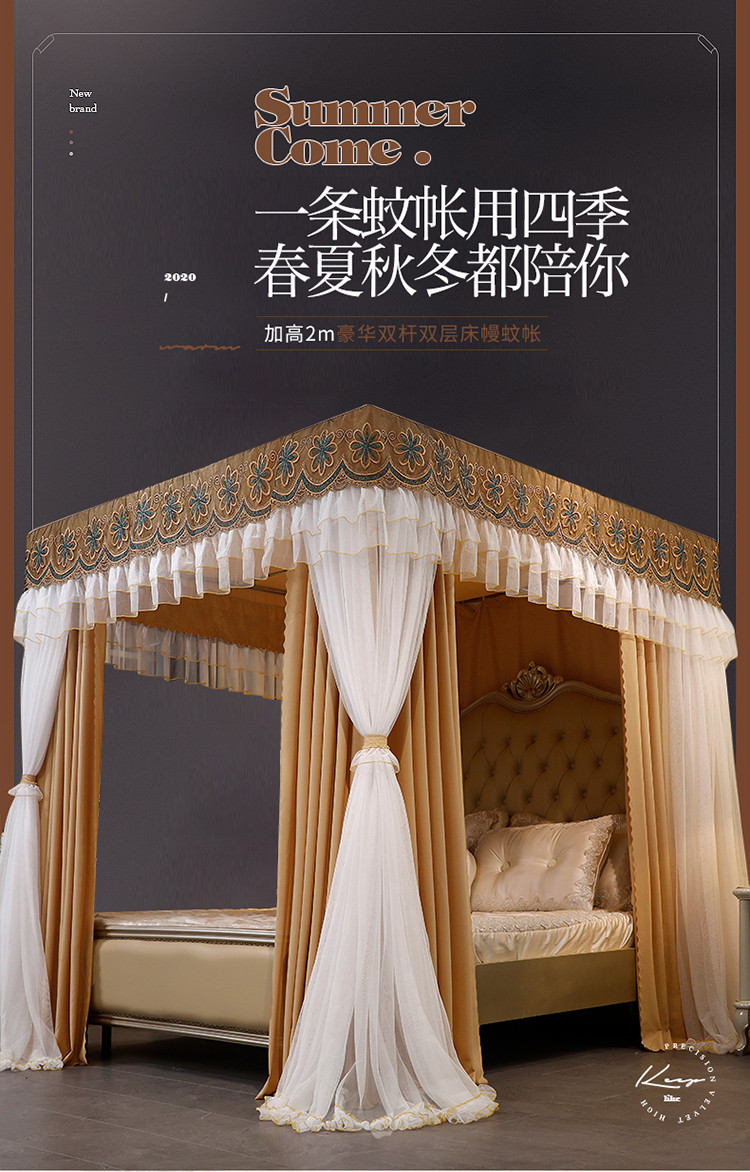 艾晶美家纺 2021新款四季款豪华双杆双层蚊帐床幔 落日卡其