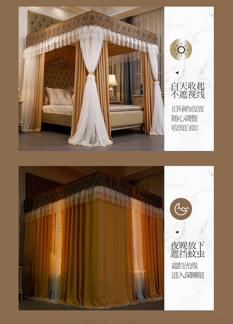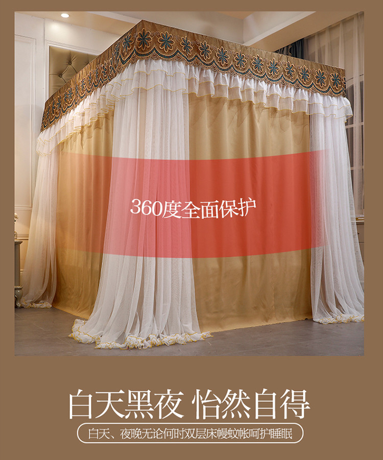 (总)艾晶美家纺有限公司 2025新款新中风双层双杆5面遮光落地宫廷蚊帐,粉枝花影,寒梅映阁,花簇橘裳,兰枝映月,云纱梦境,竹韵绕阁