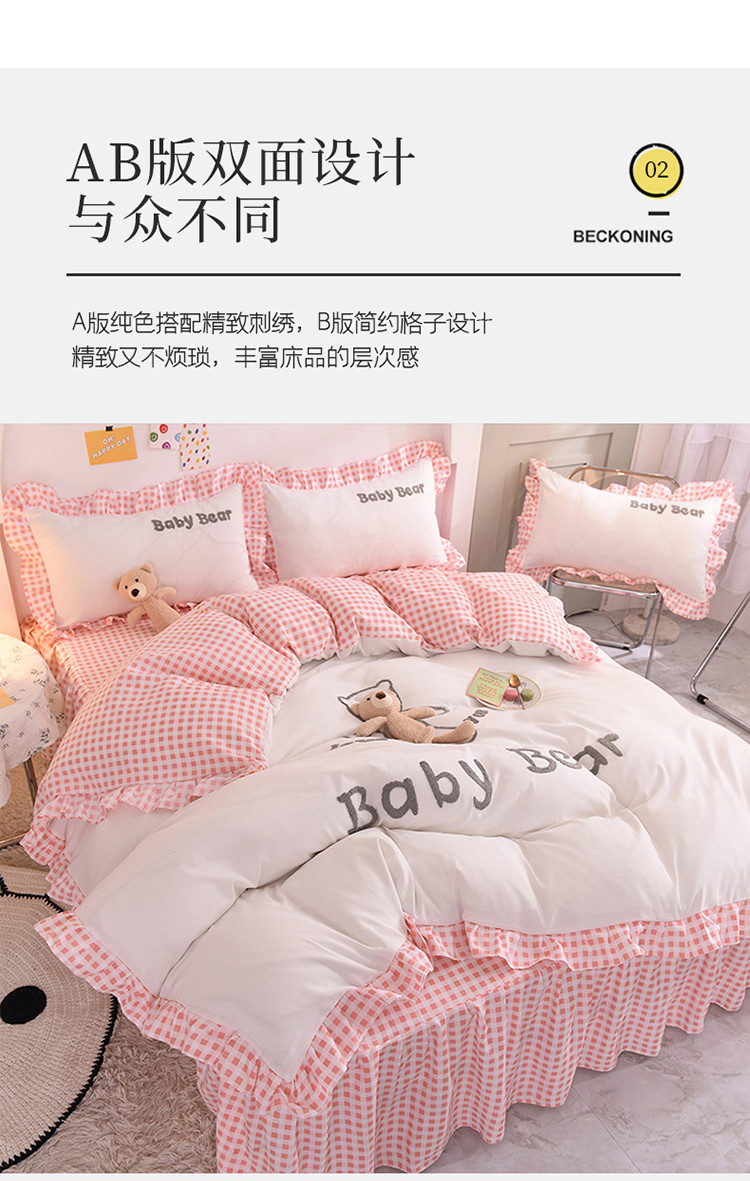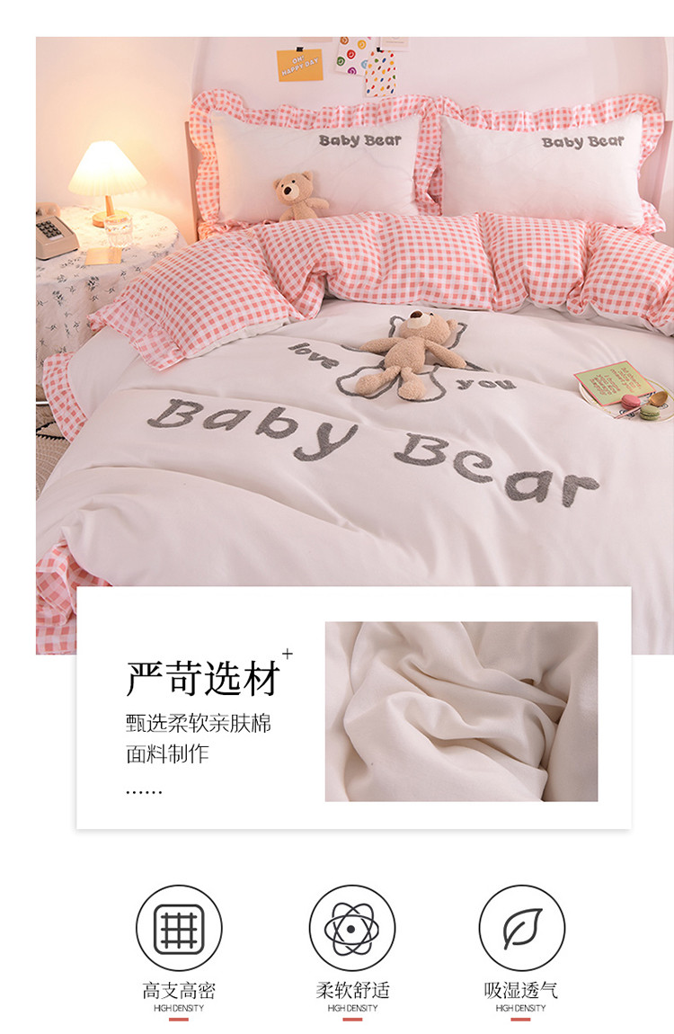 (总)梦之岛2021新款韩版磨毛床单款床裙款四件套玩偶熊系列