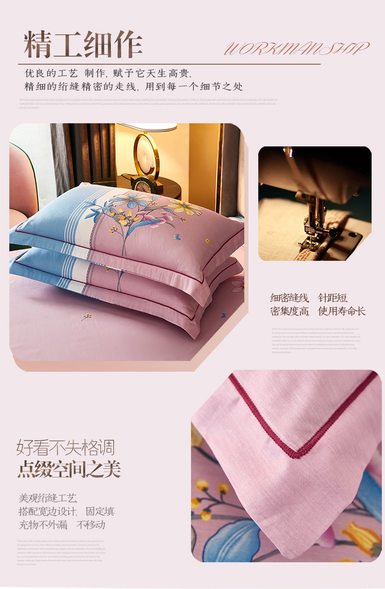 雲归梦 2021全棉大版四件套中国风花卉 俏丽多姿(粉兰)