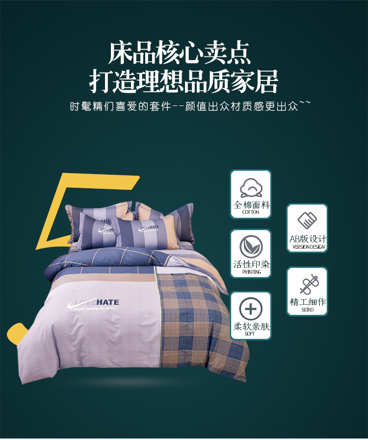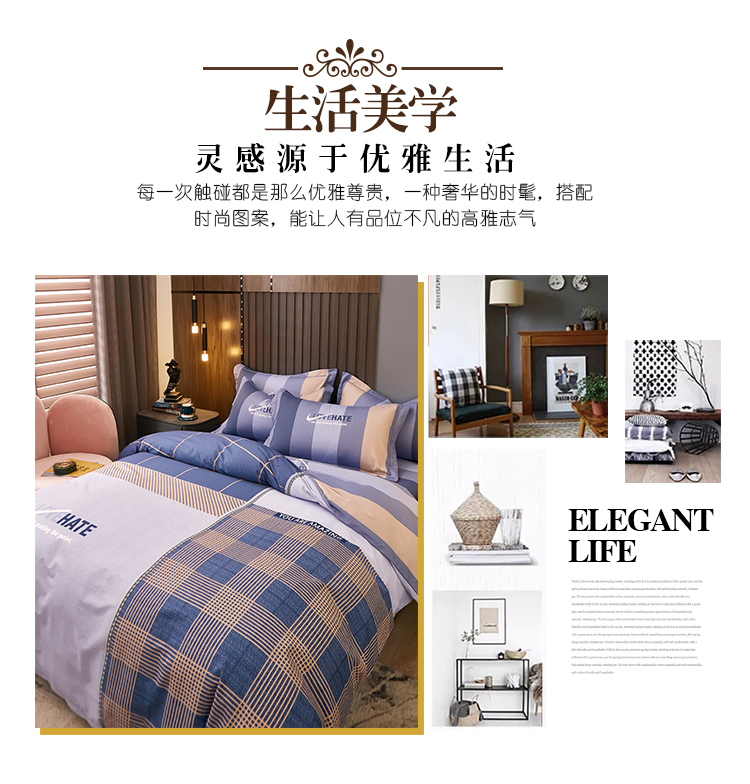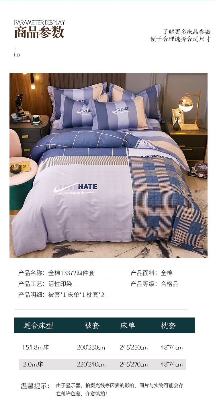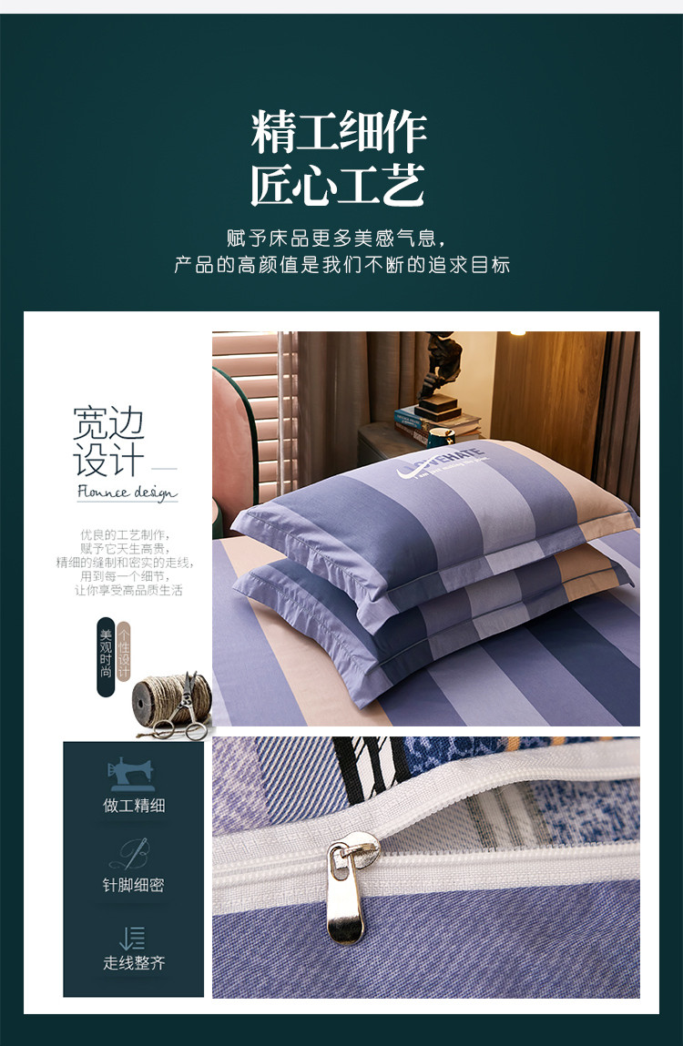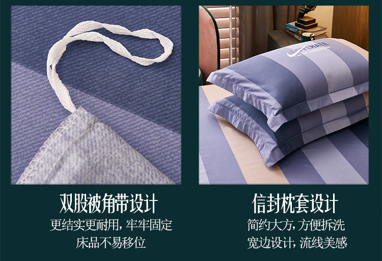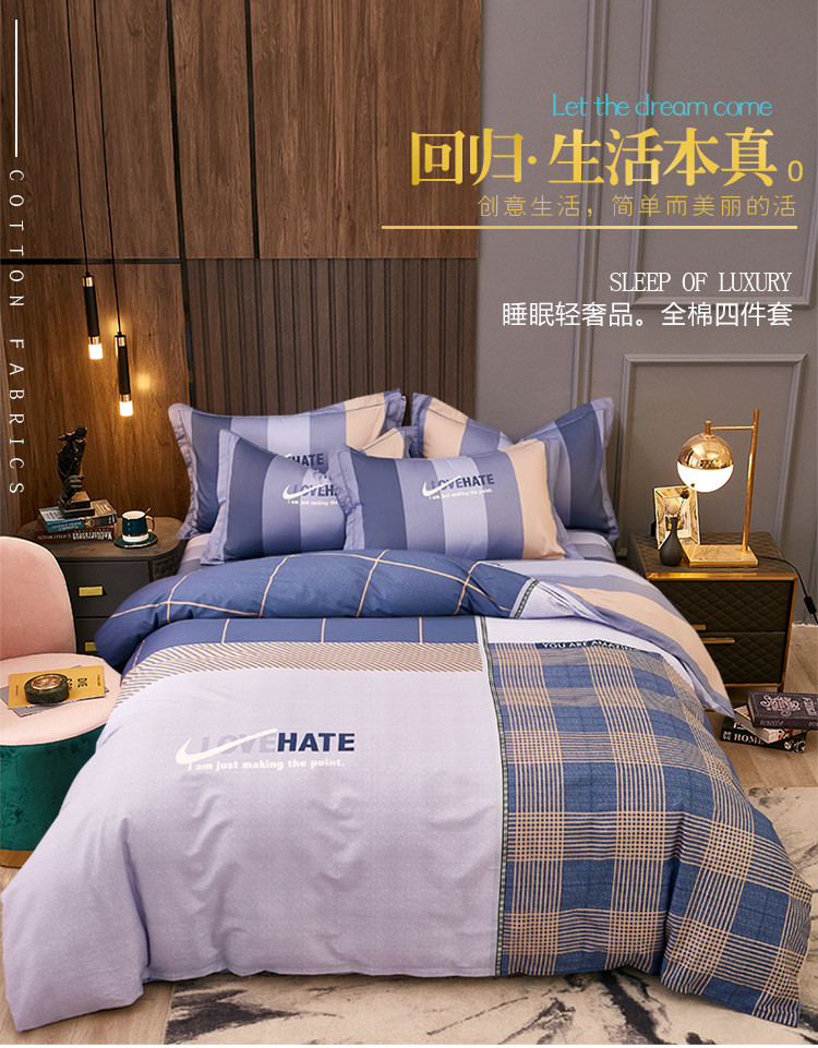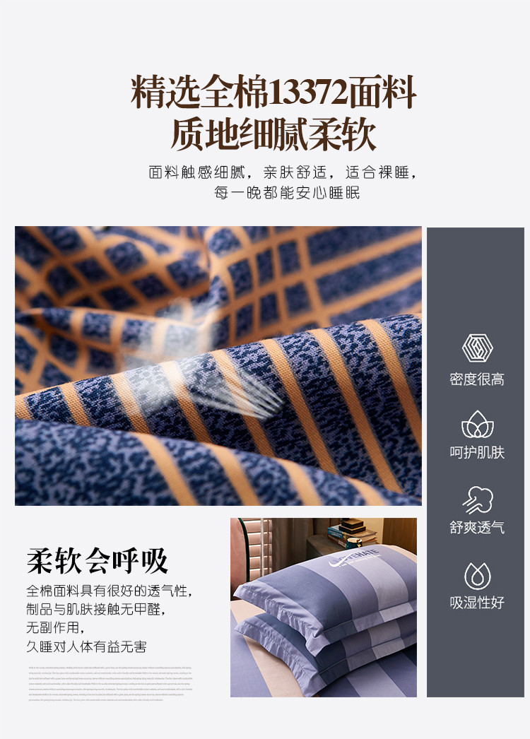 商品名称:雲归梦 2021全棉大版四件套休闲格条系列 托马斯