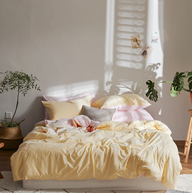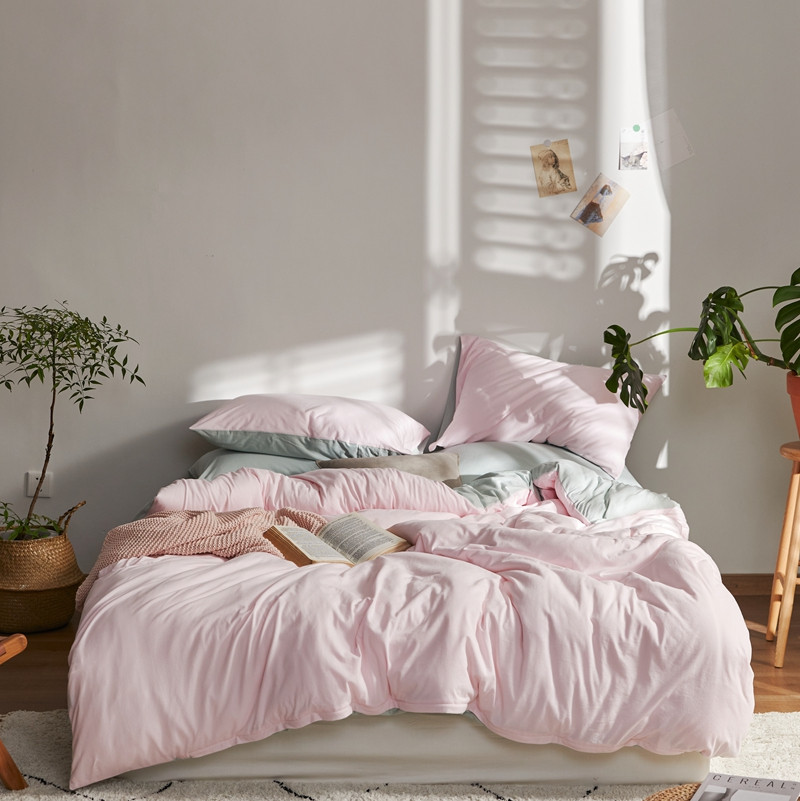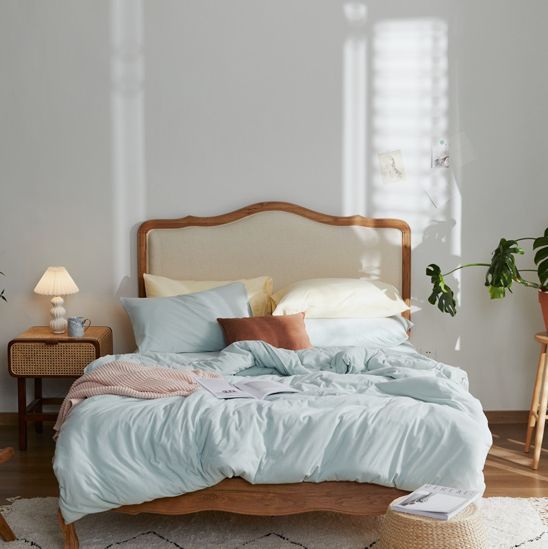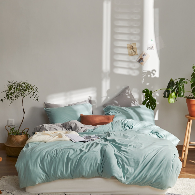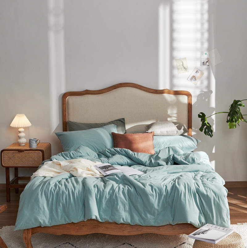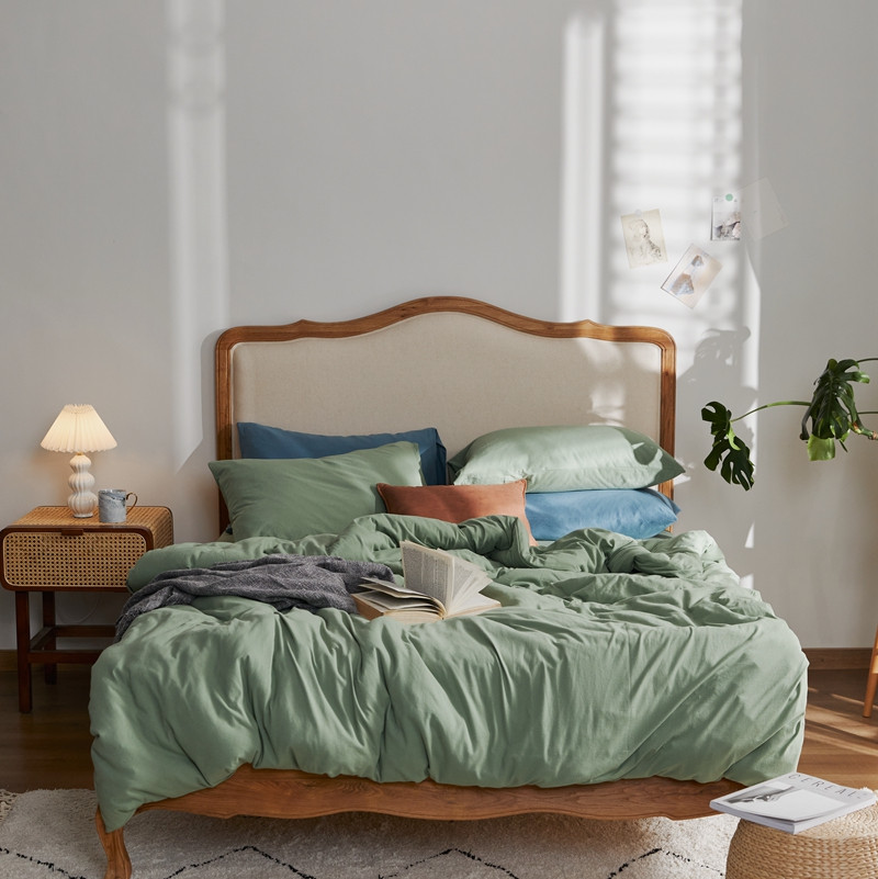 (总)涞澳家纺 2026新款全棉纯棉水洗棉纯色花边款四件套-珠若,珠若-米白,珠若-浅灰,珠若-浅绿,珠若-浅玉