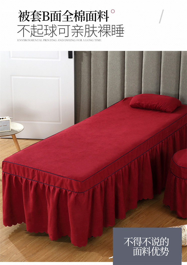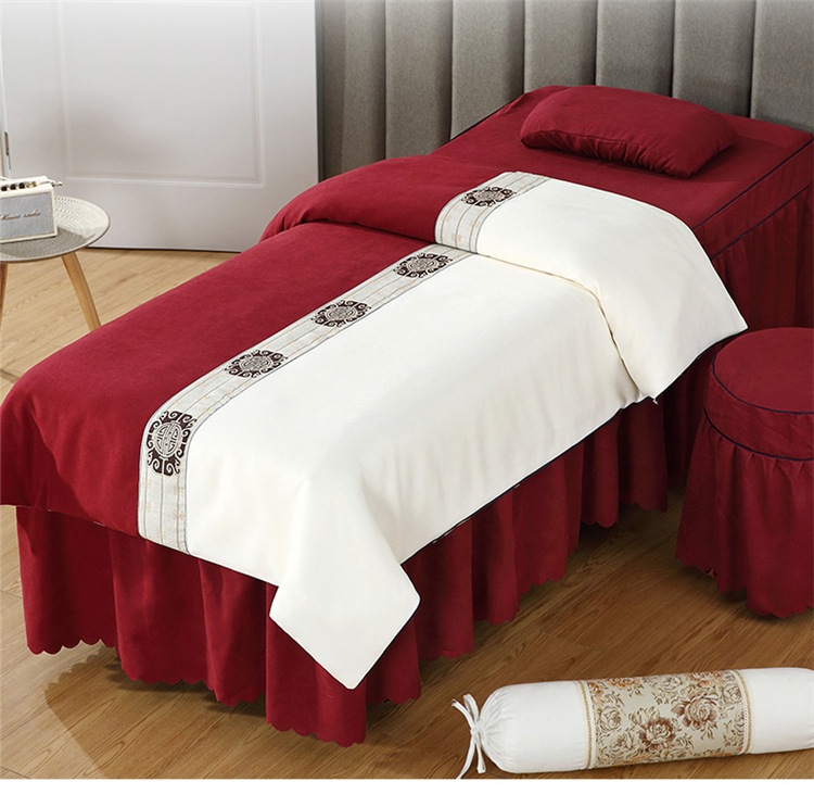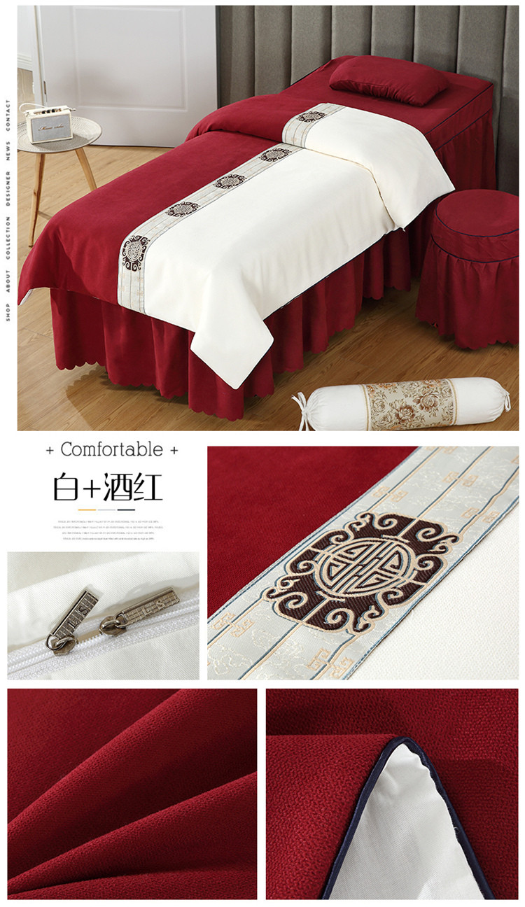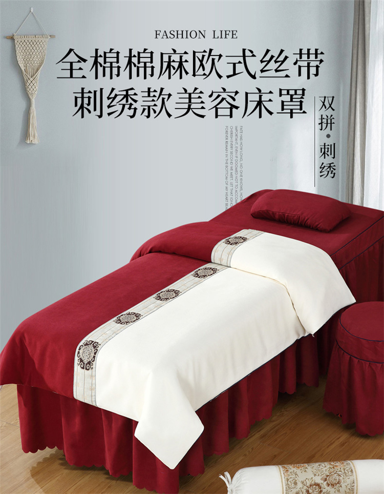 乐逸家纺 2023新品棉麻中式美容床罩 米白+酒红