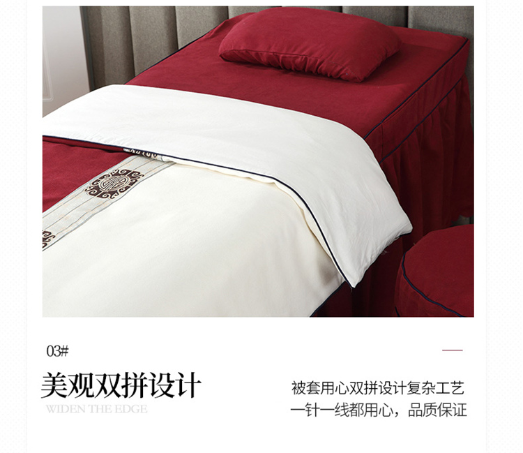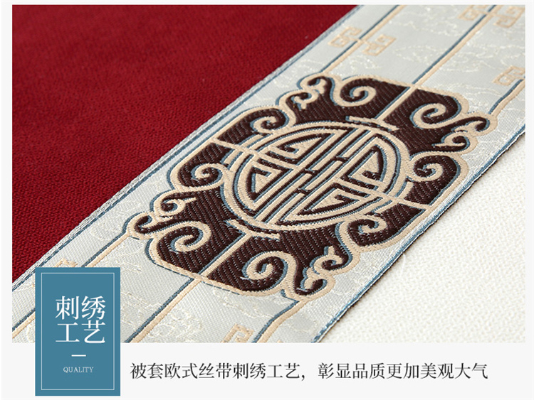 • 91家纺网 家纺一手货源 找家纺 乐逸家纺 2023新品棉麻中式美容床罩 米白+酒红