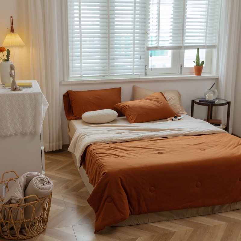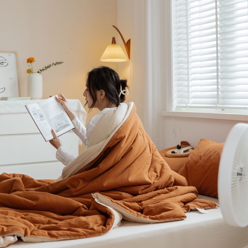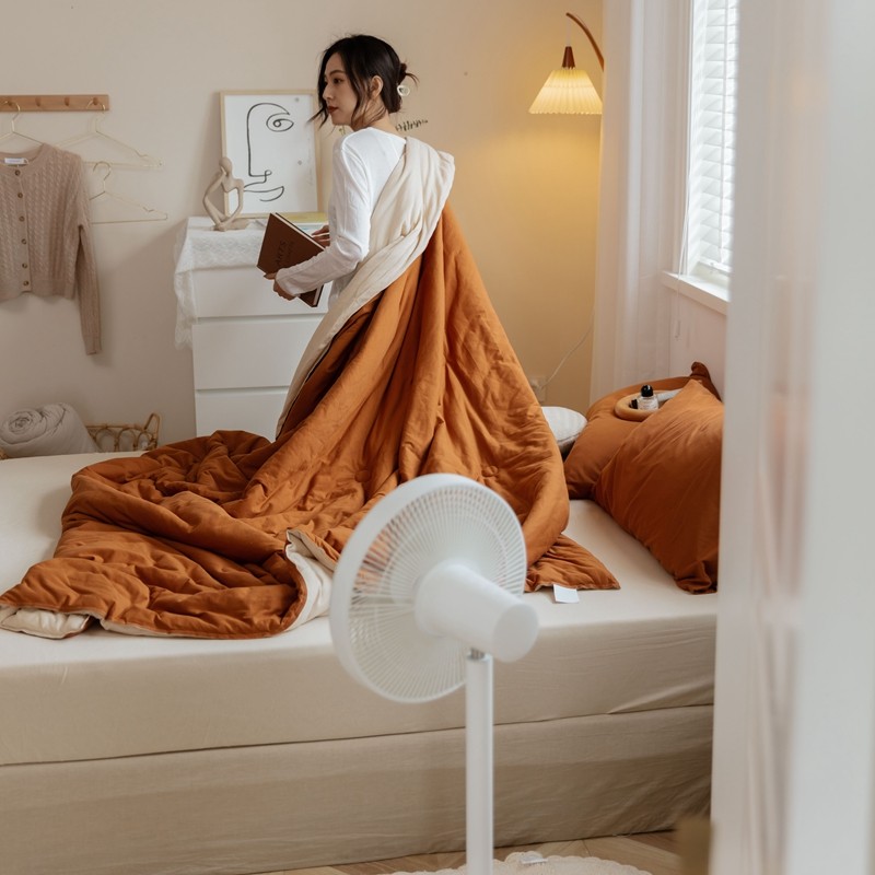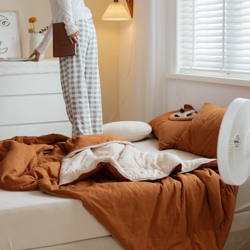 寐眠 2021新款纯色条纹针织棉夏被 焦糖品奶茶