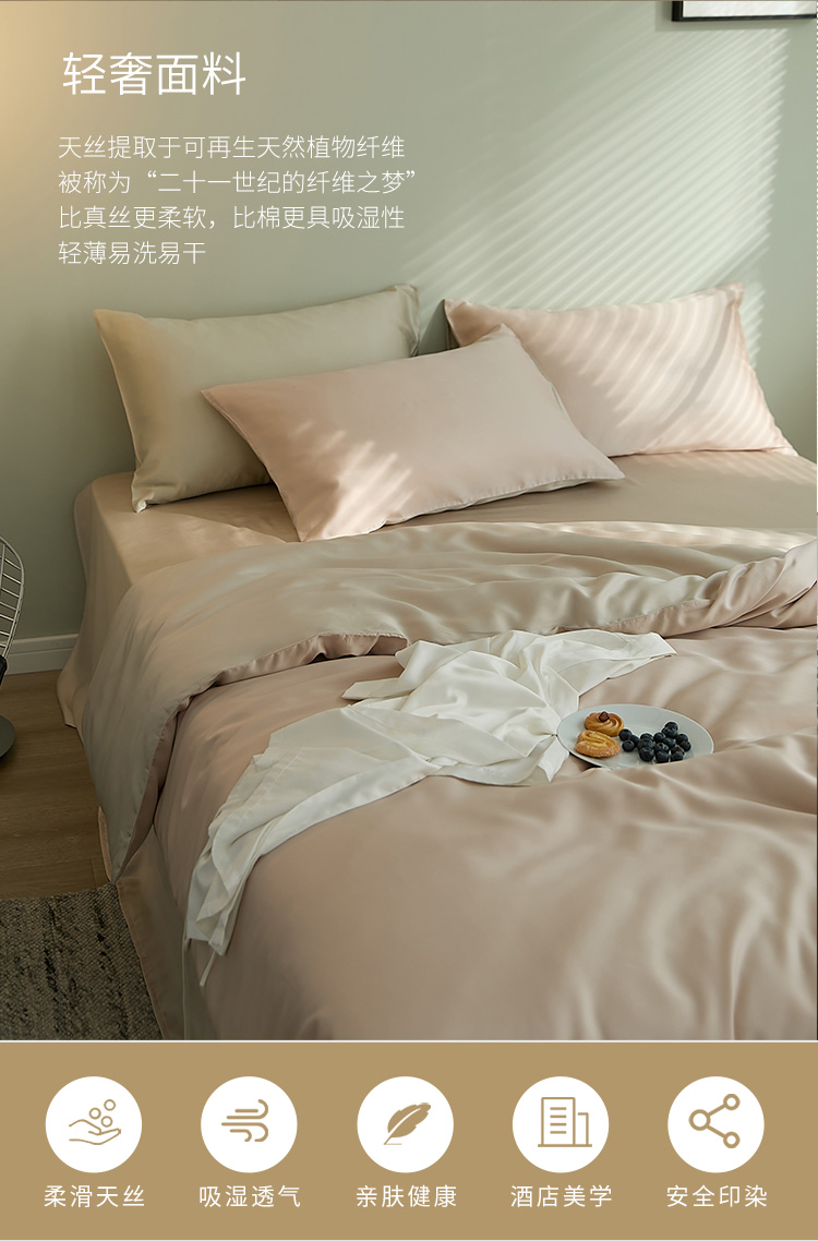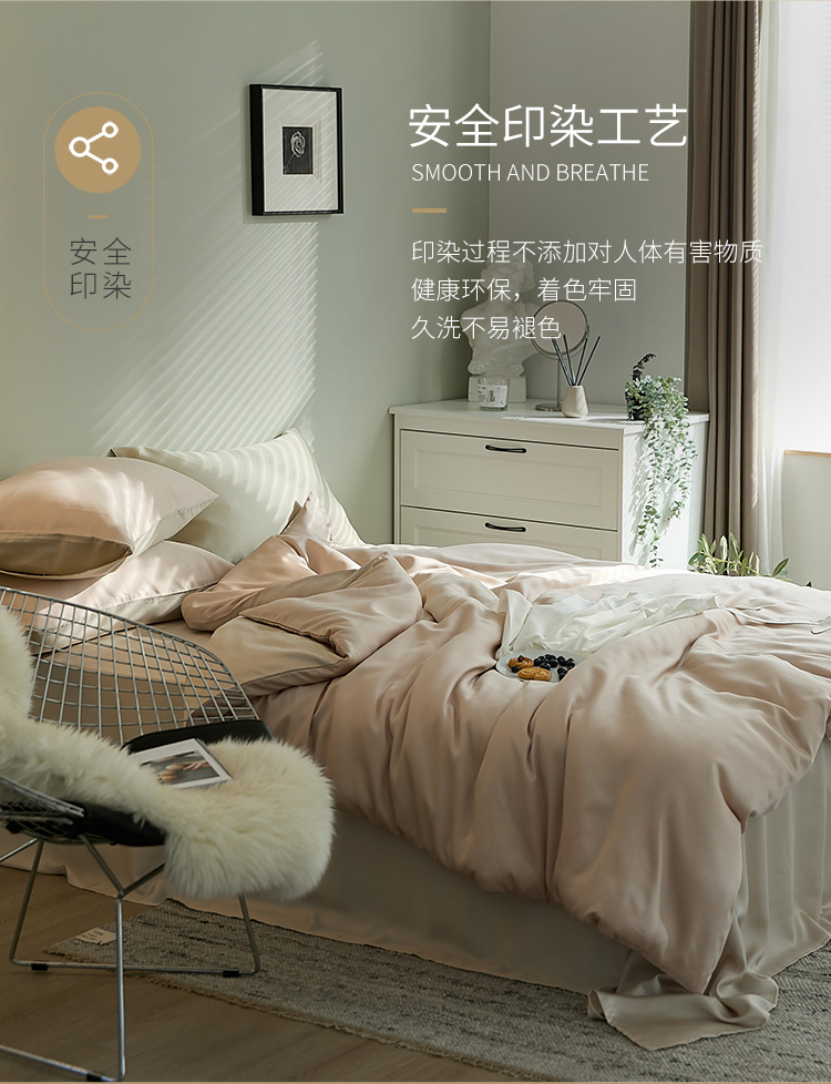 当前位置: 91家纺网 > 商品网购 > 床品套件 > 四件套 > 莱赛尔四件套 > 新款天丝双拼色四件套 浪漫粉