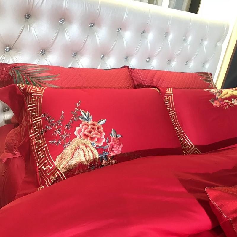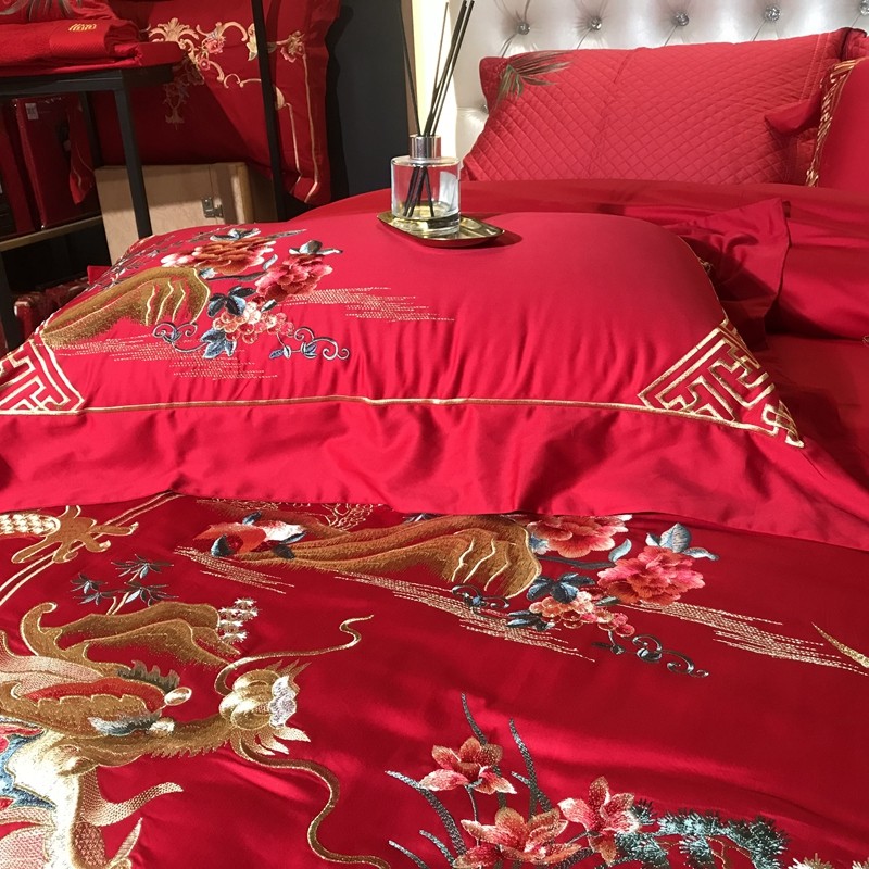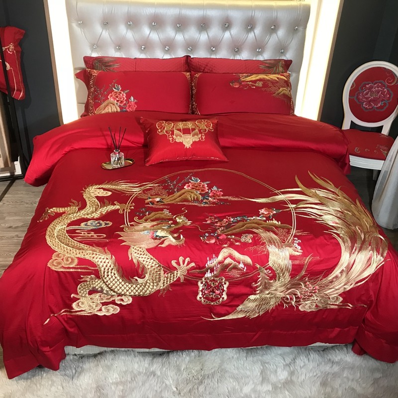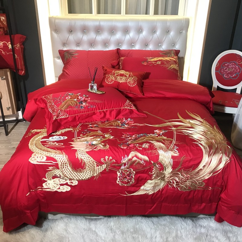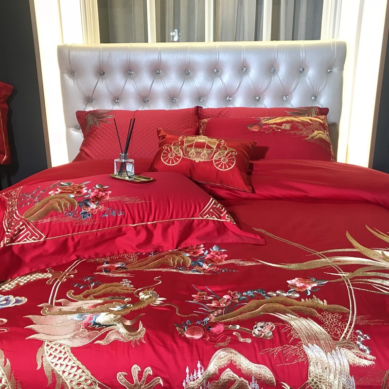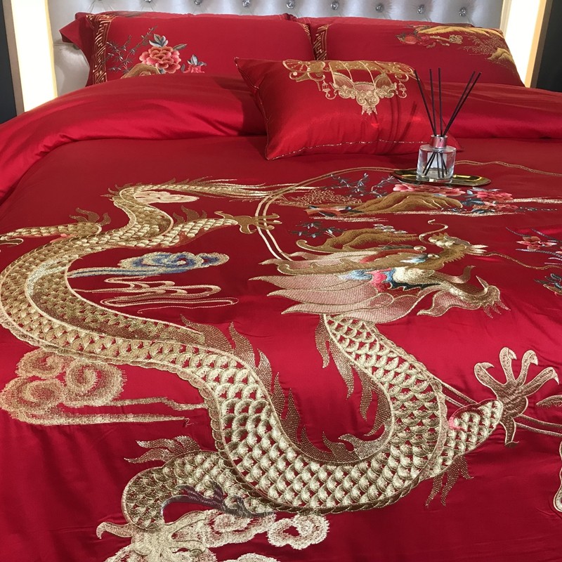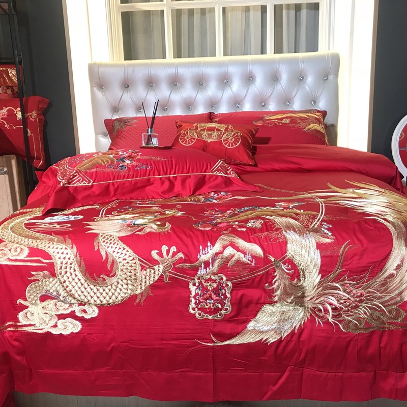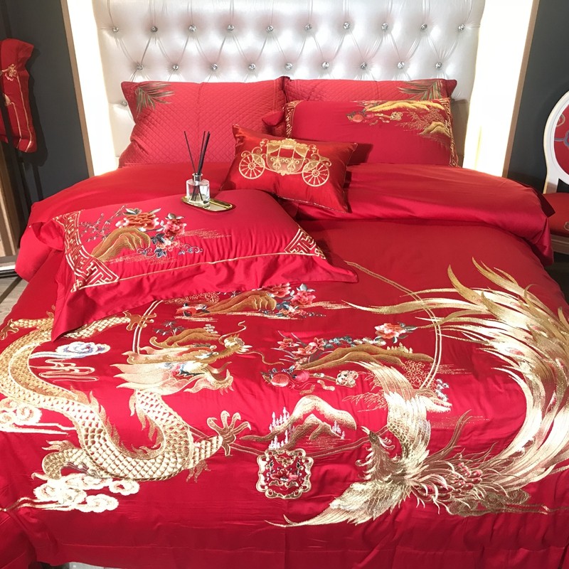 玖玖爱 2021新款100支婚庆绣花四件套 喜庆龙凤