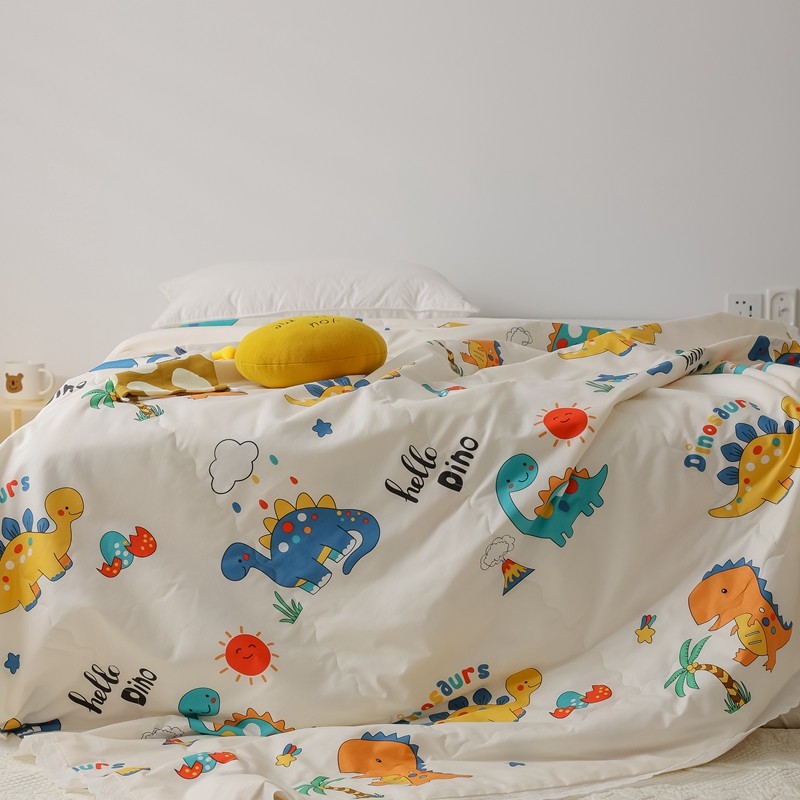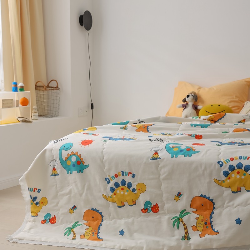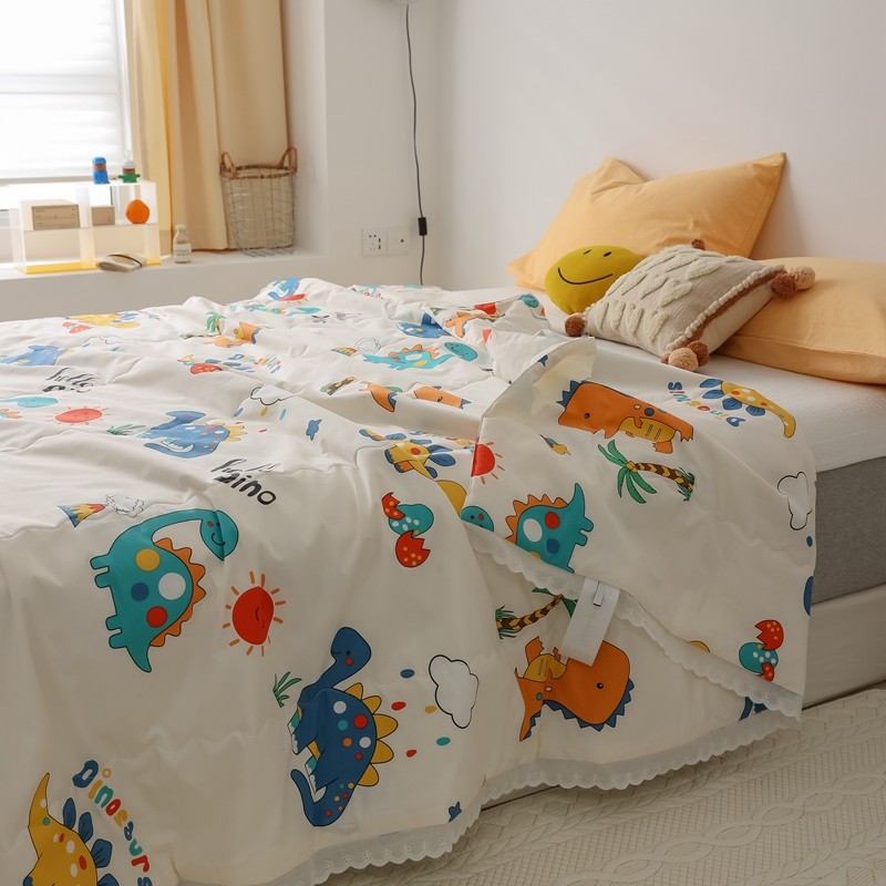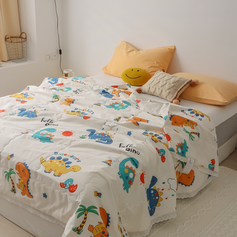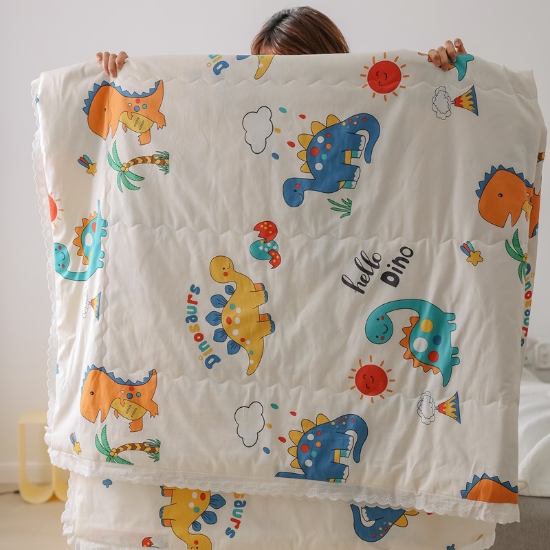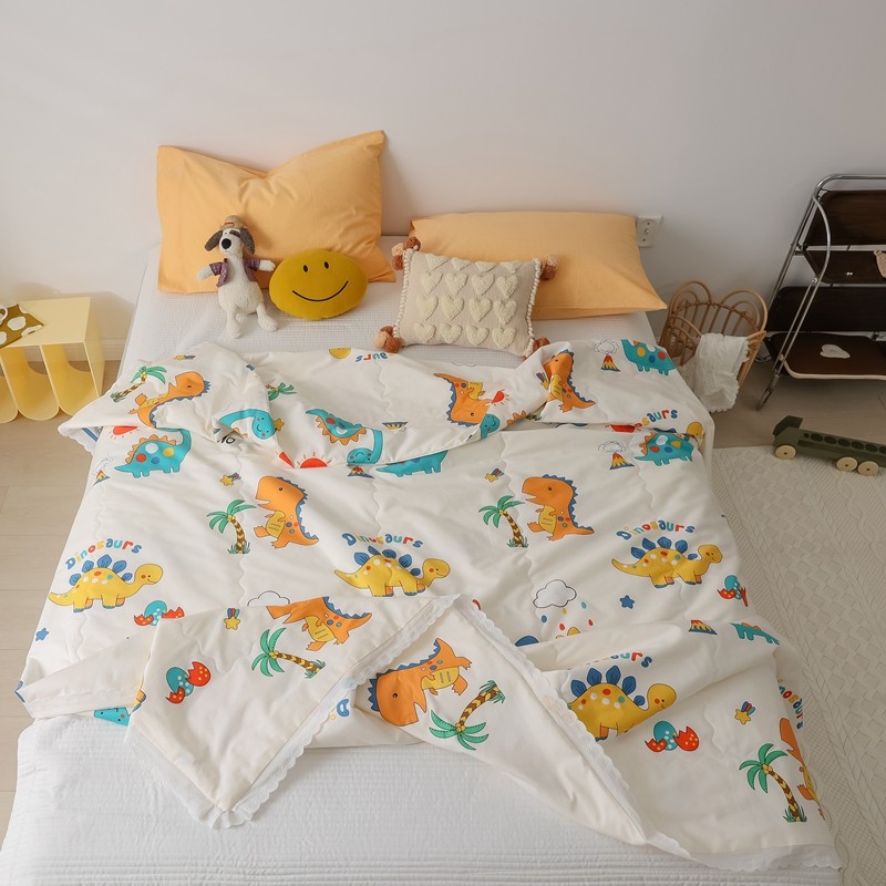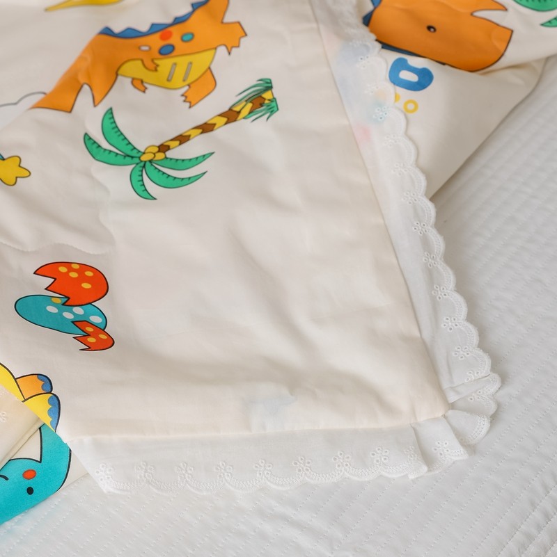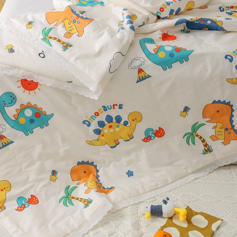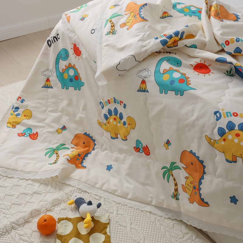 丽笙 2021新款全棉印花花边夏被 热带恐龙