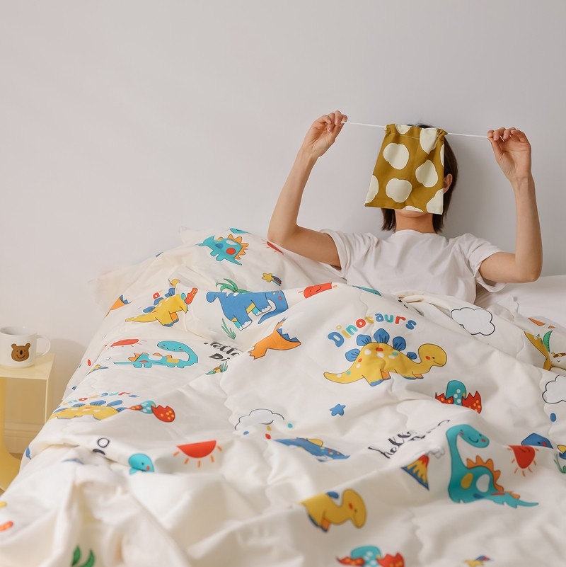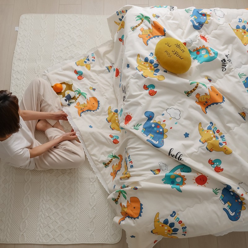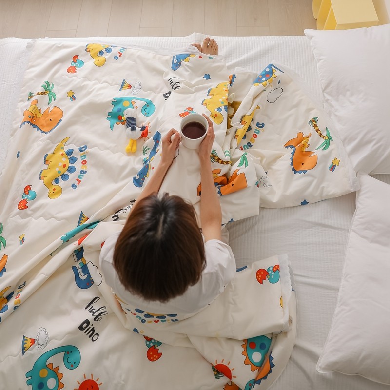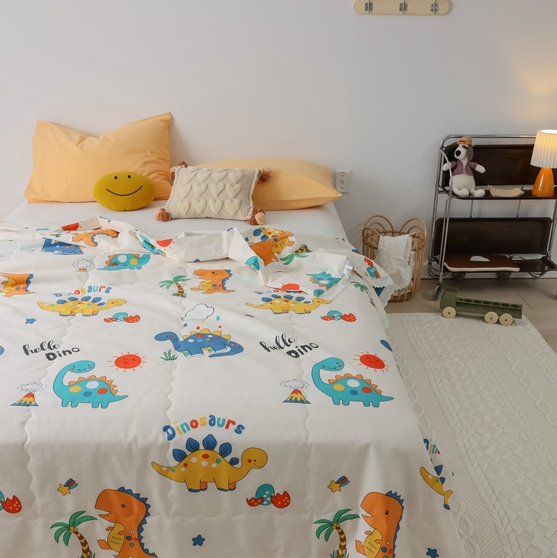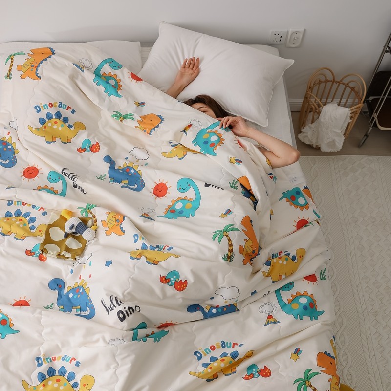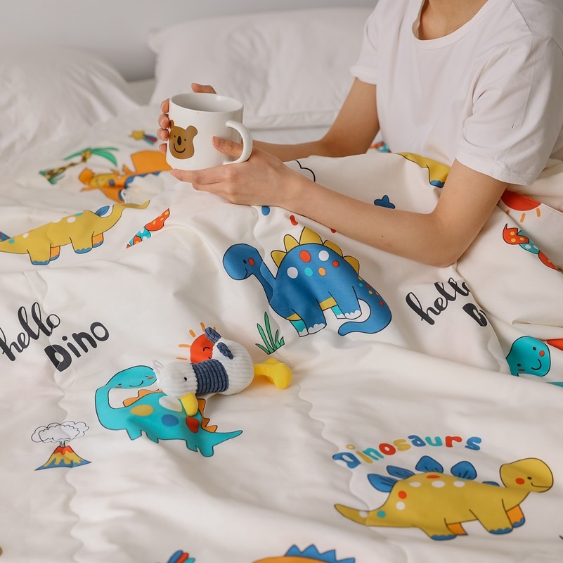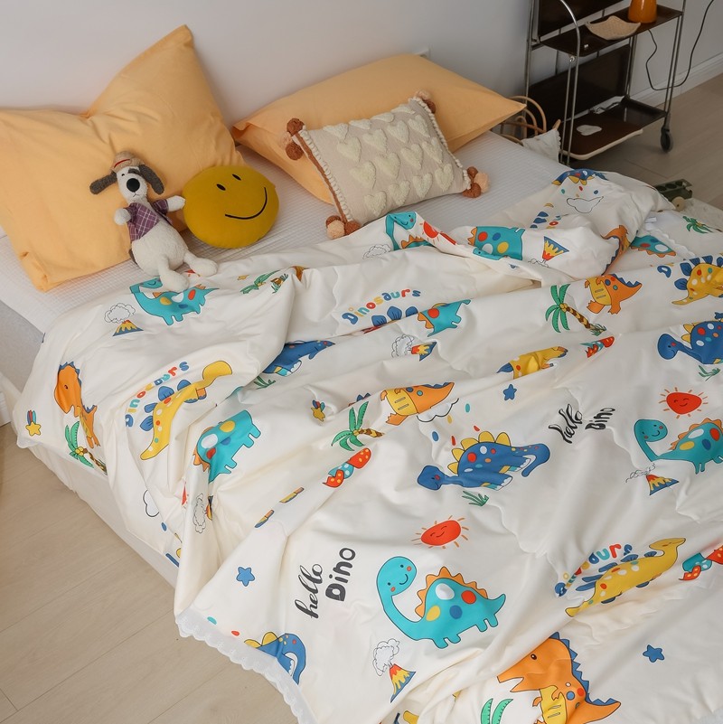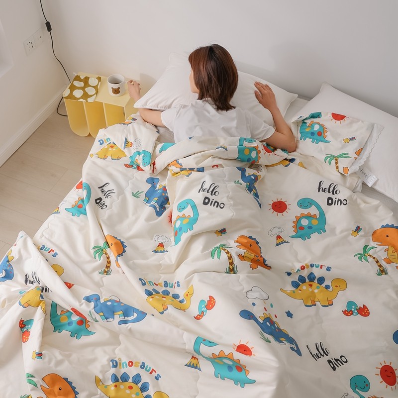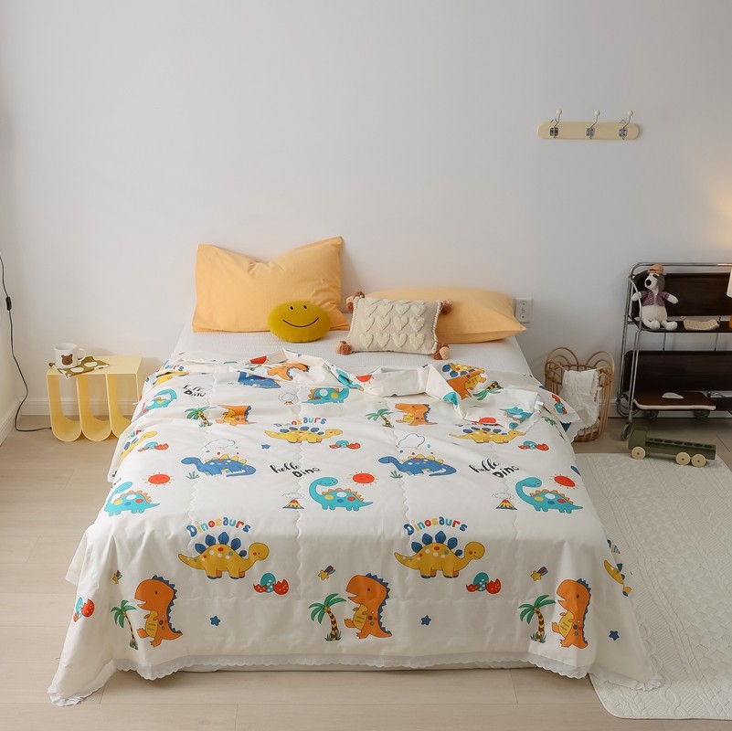 丽笙 2021新款全棉印花花边夏被 热带恐龙