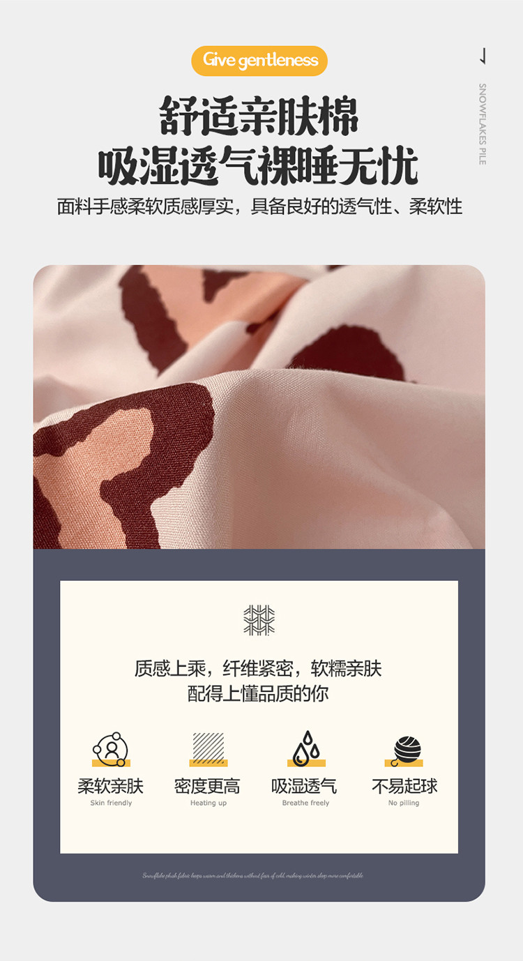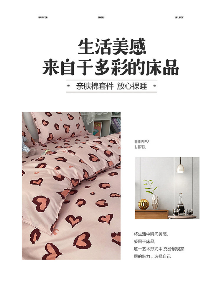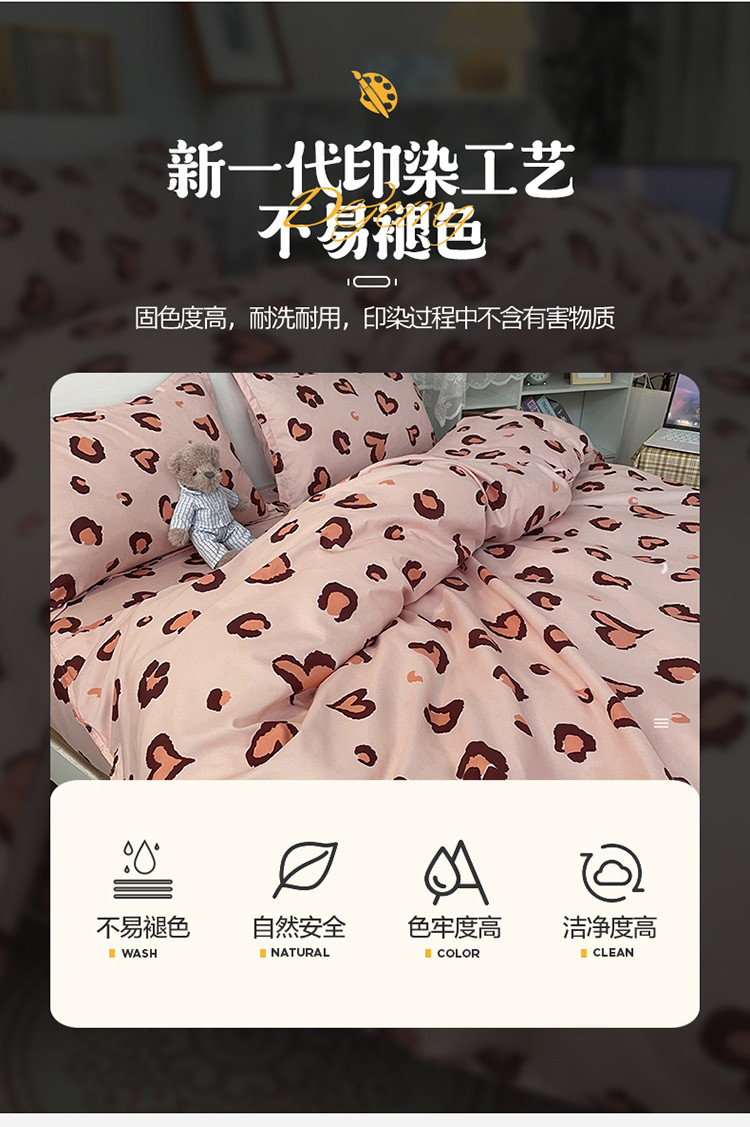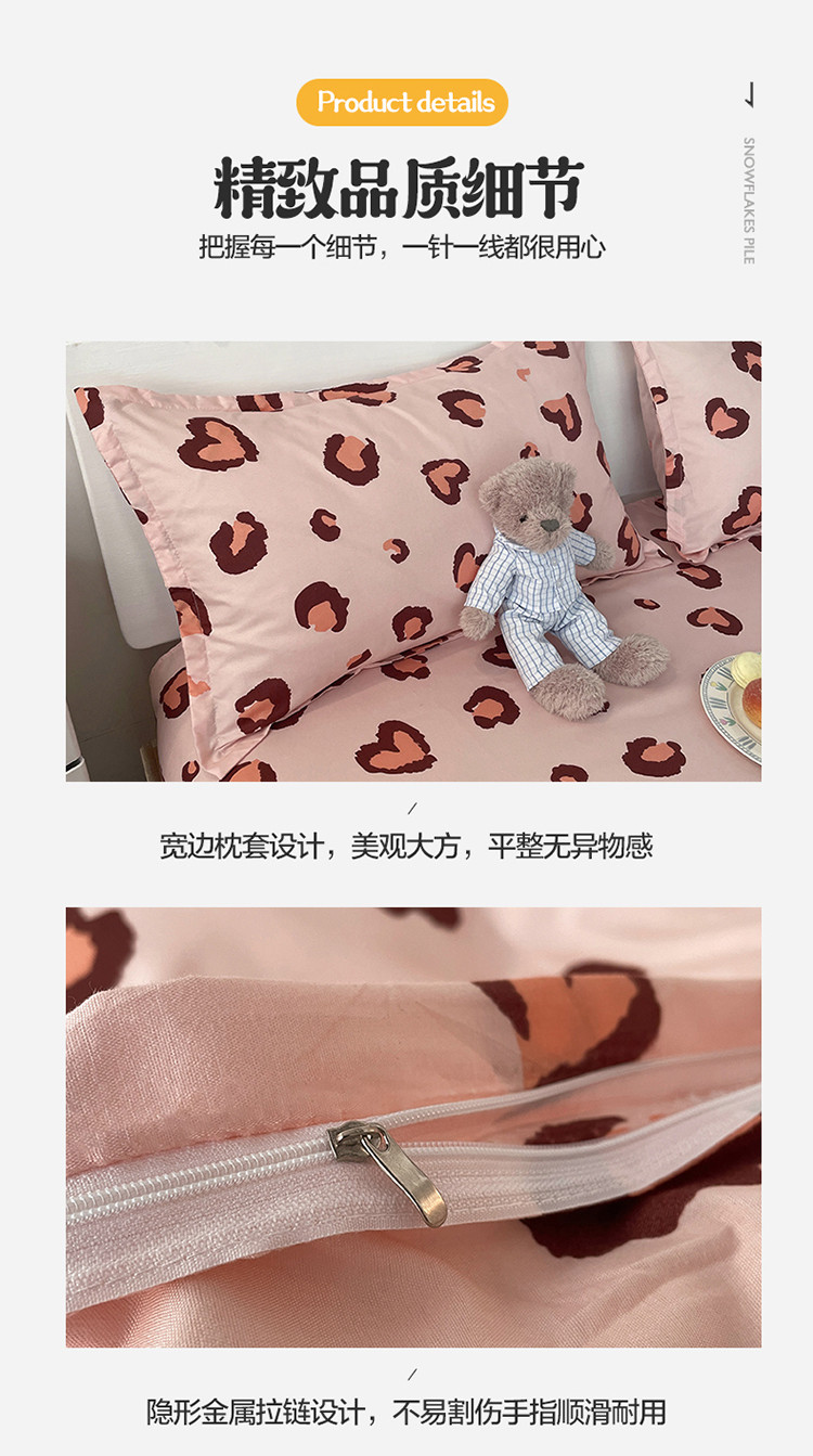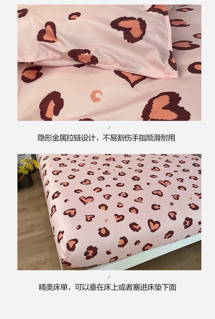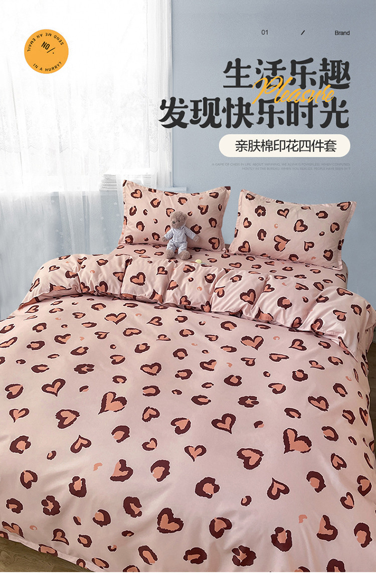 宏源家纺 2022新款芦荟棉四件套 爱心豹纹