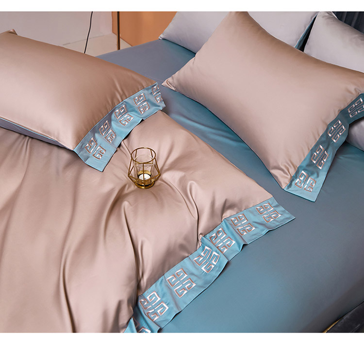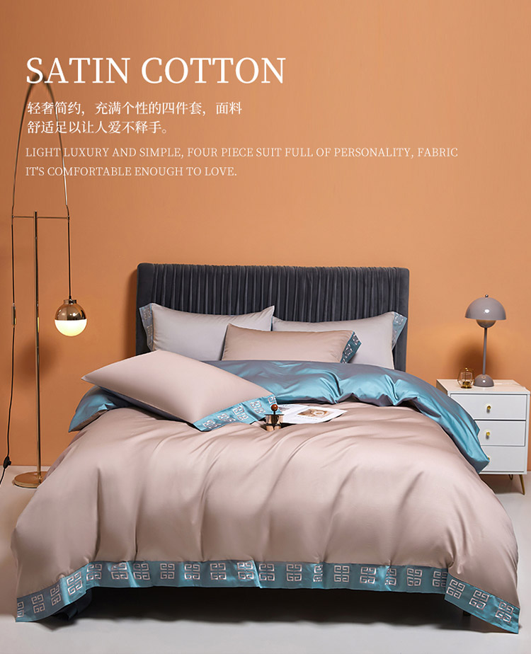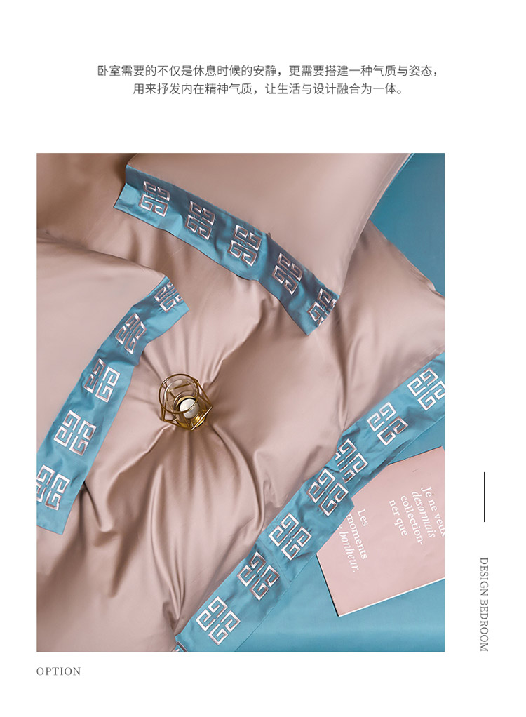 爱缦2021宫系列100支长绒棉奥棉四件套棚拍图萸灰粉闷青色