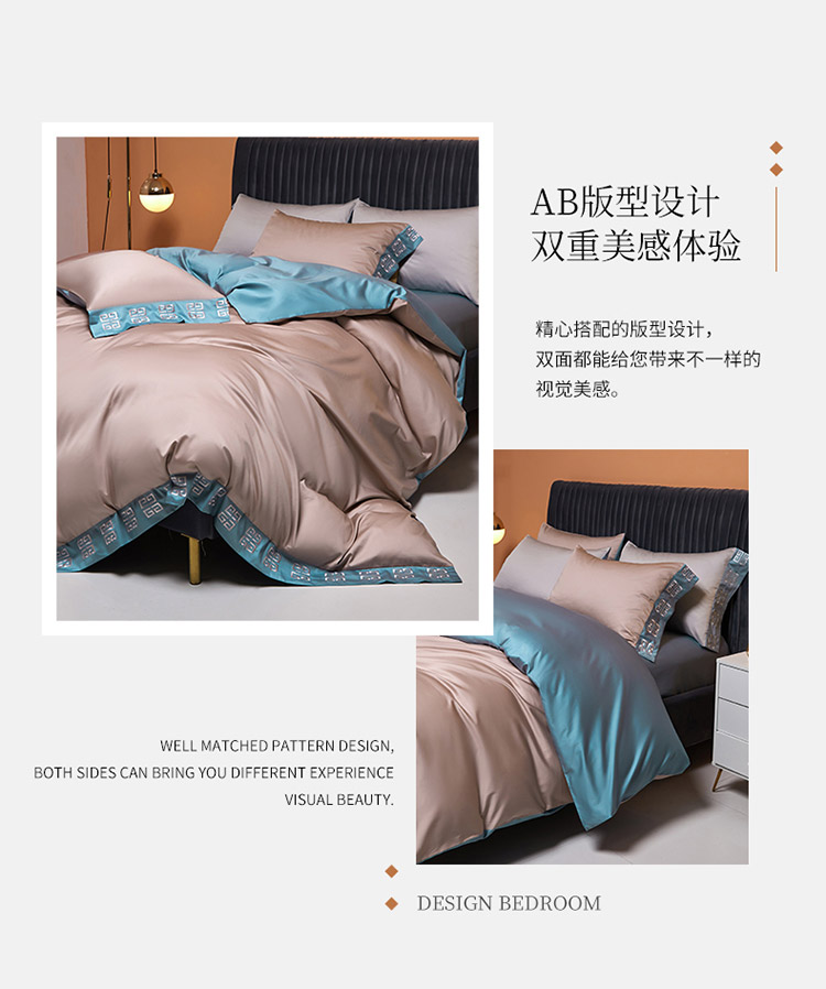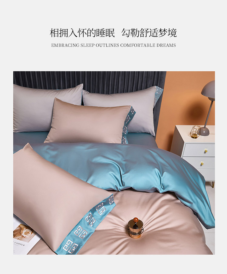 (总)爱缦 新款60支莱赛尔四件套-至真系列,蓝米驼,米白粉,浅紫,玉粉