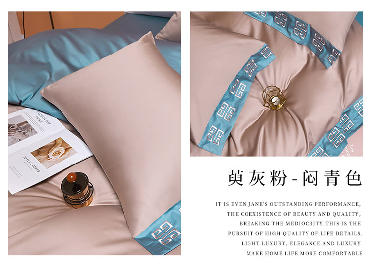 商品名称:爱缦2021宫系列100支长绒棉奥棉四件套棚拍图萸灰粉闷青色