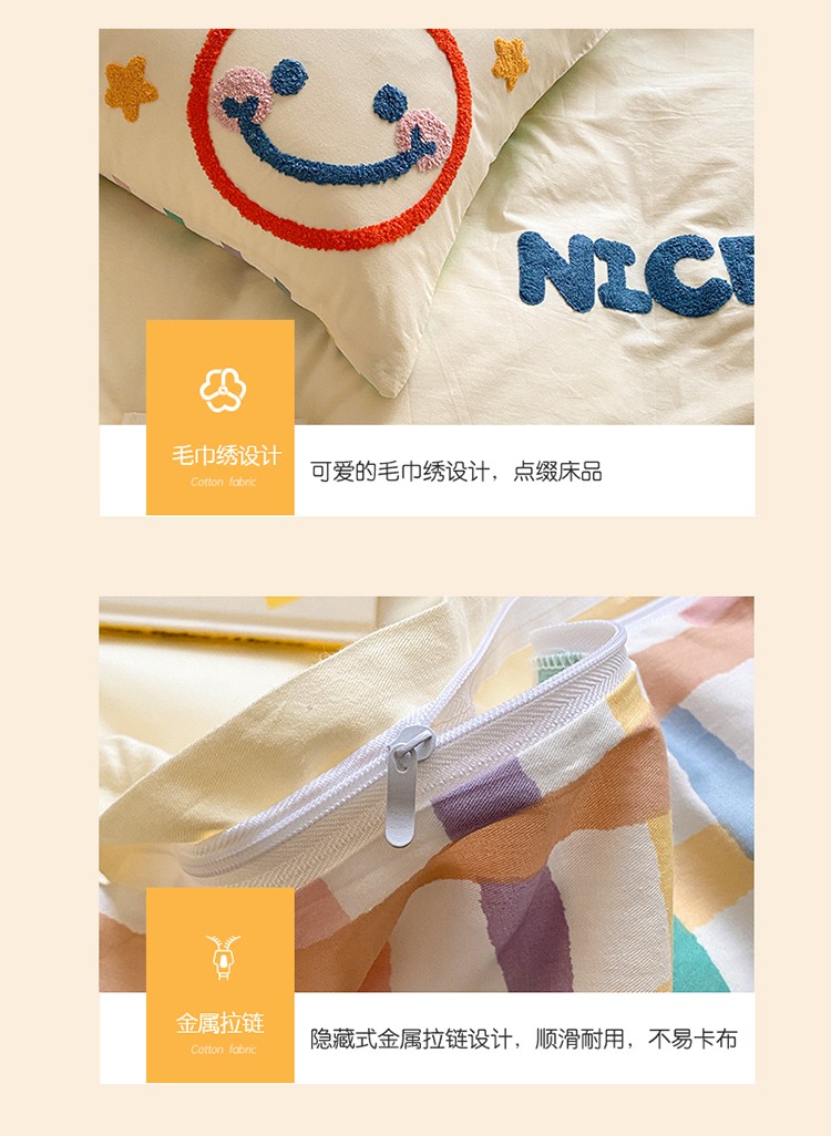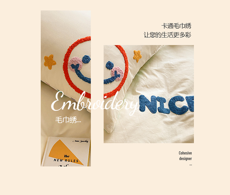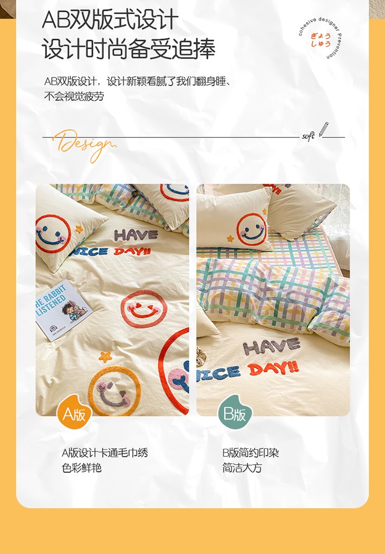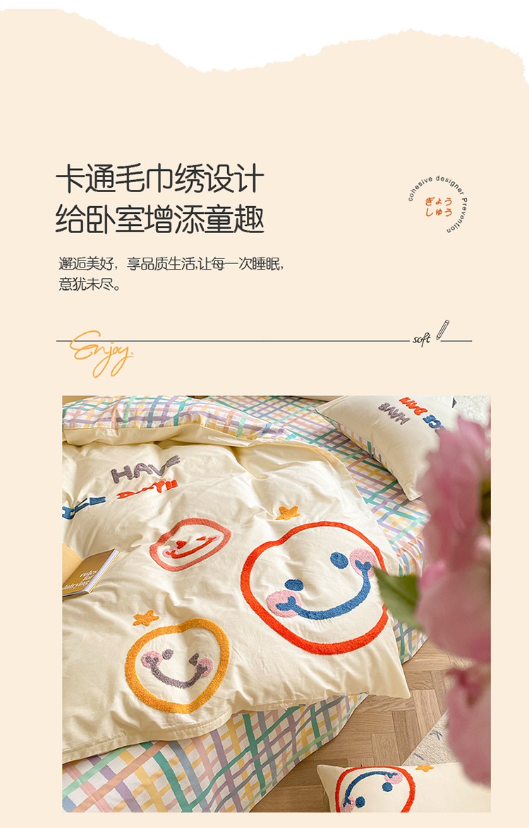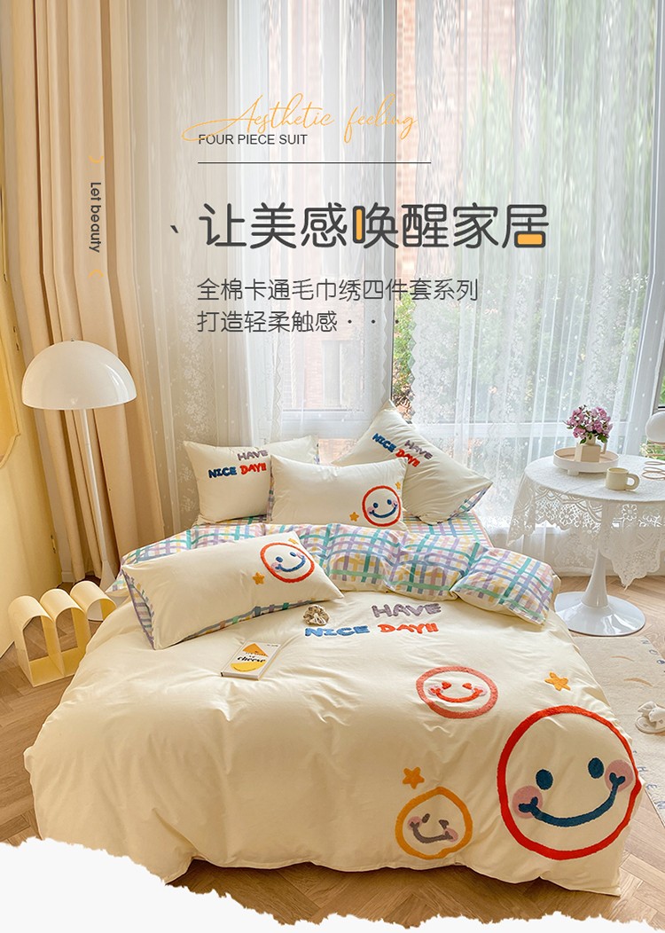 商品名称:澳梵家居 2021新款全棉卡通大版毛巾绣四件套 微笑百事达