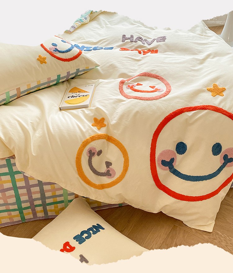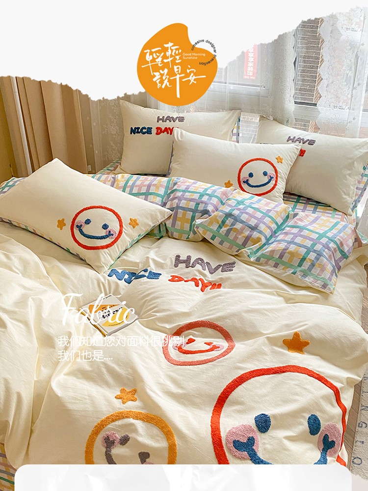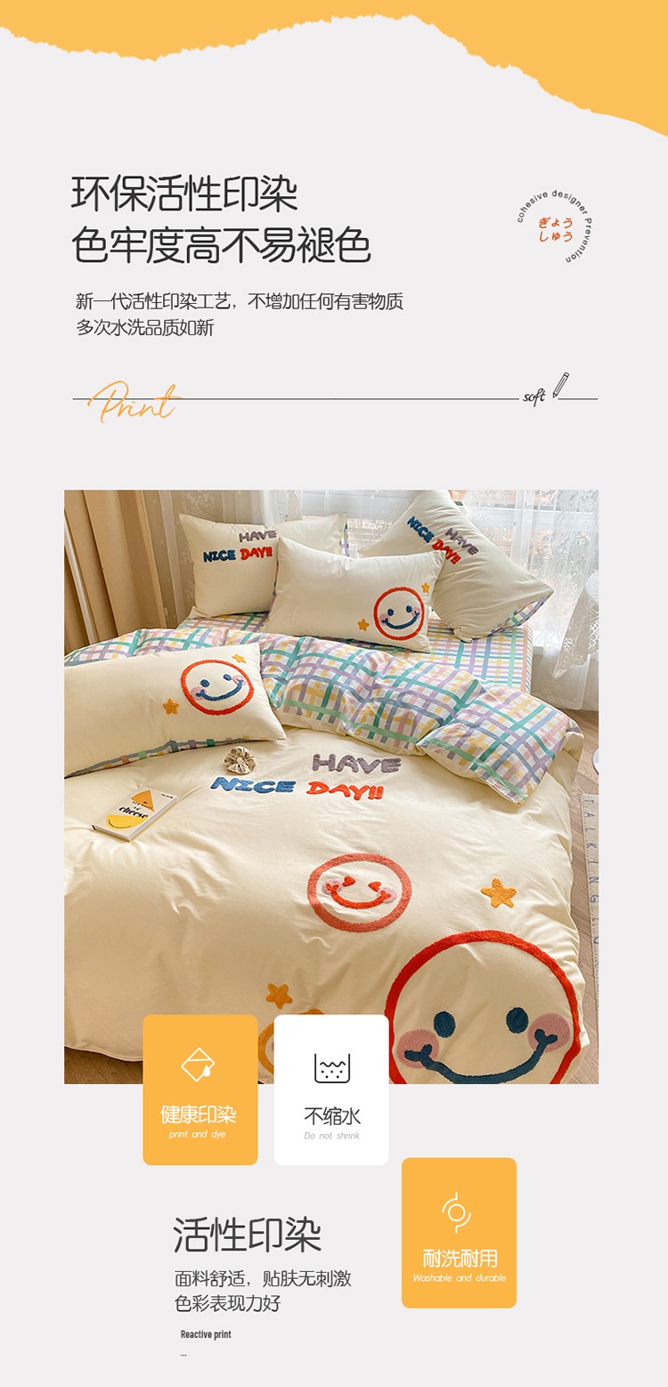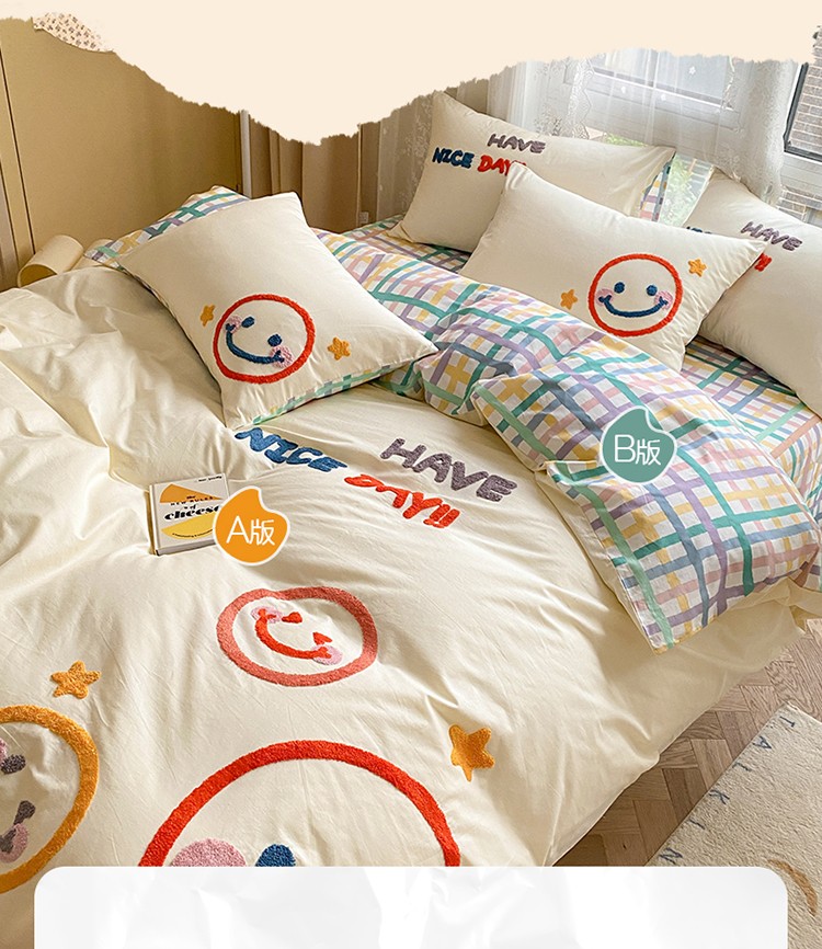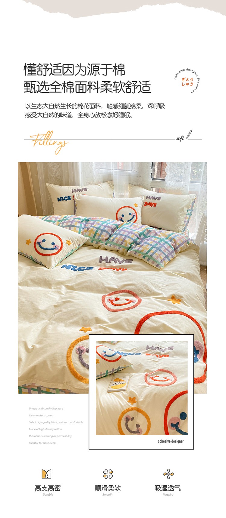 商品名称:澳梵家居 2021新款全棉卡通大版毛巾绣四件套 微笑百事达