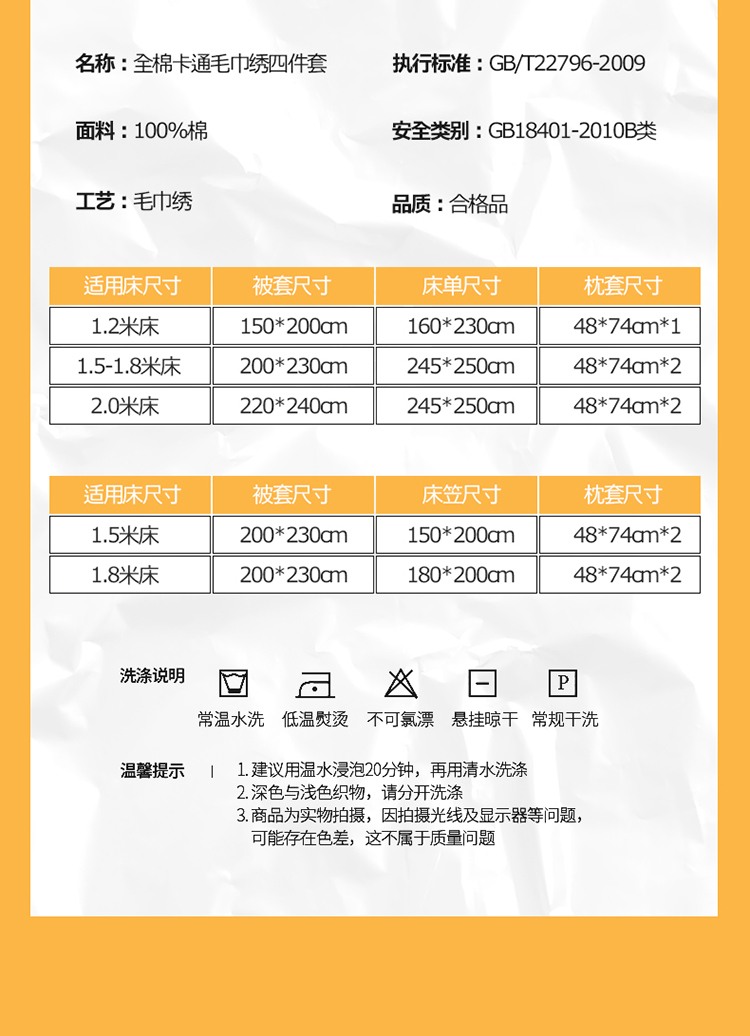 3、通州区市场监督局友情提醒,近期涉及到床上用品不褪色不掉毛不缩水的投诉和以世界知名品牌图案为面料的床品举报较多。请各商家自检自查,对照整改或进行下架处理。