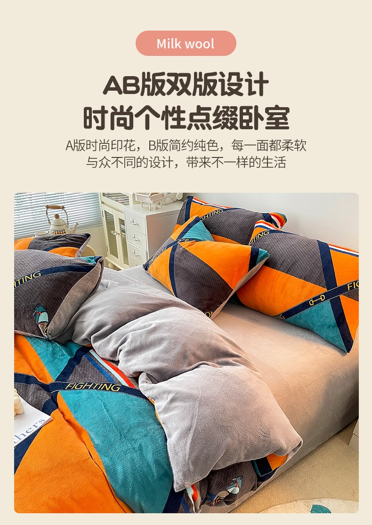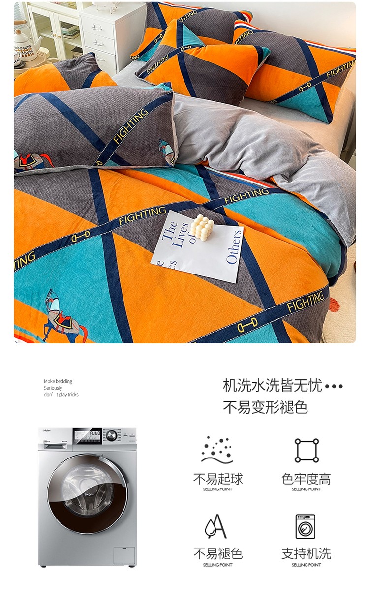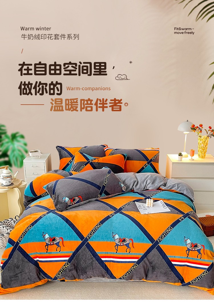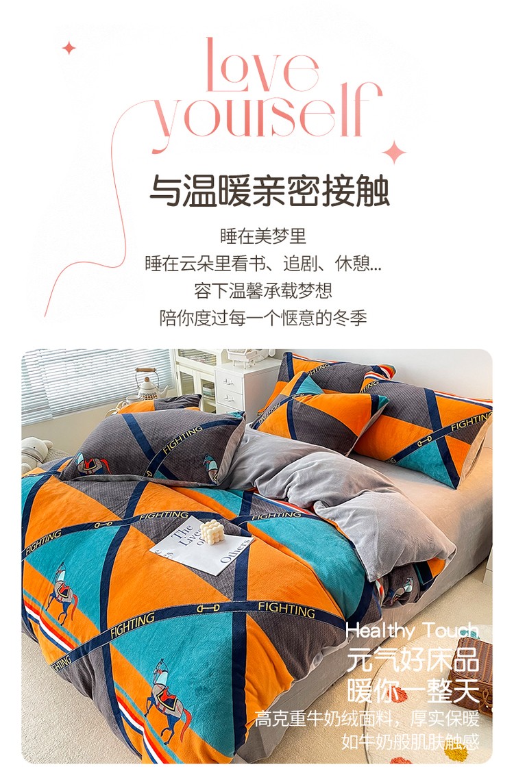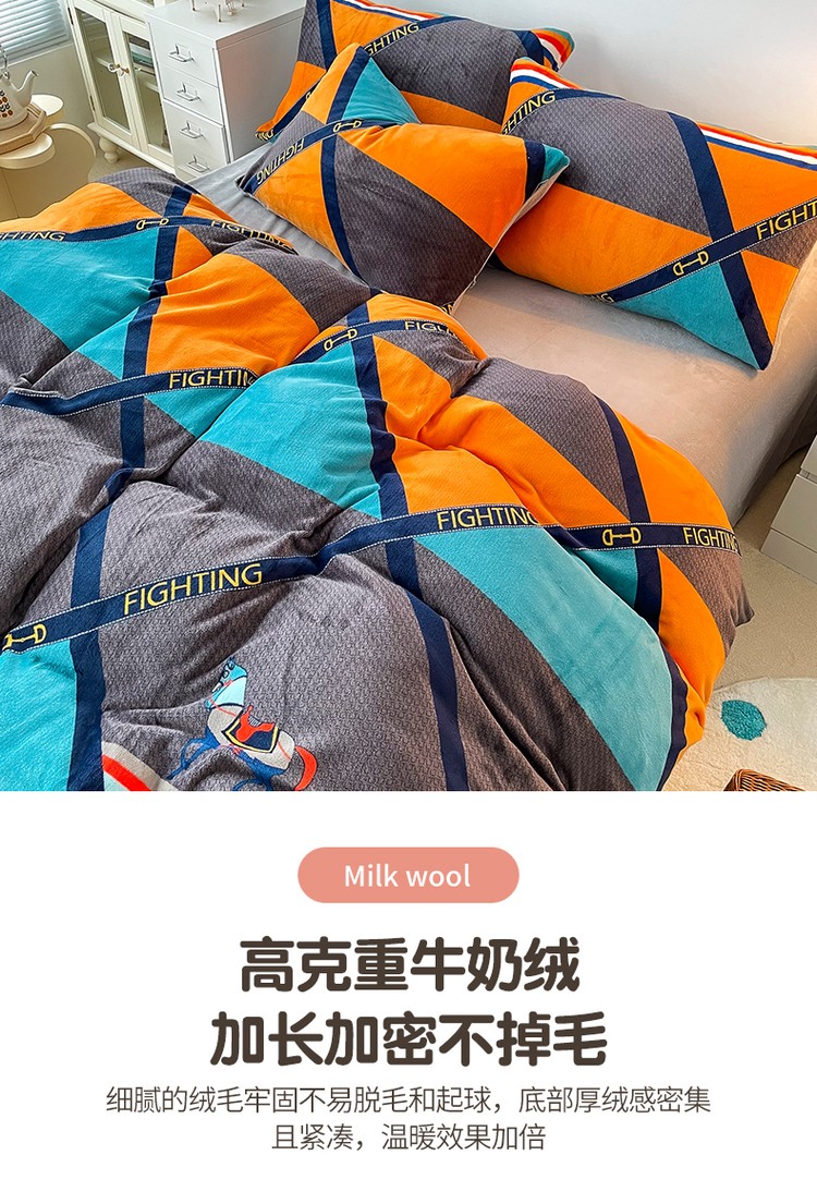 优彩 2021新款200克高克重印花牛奶绒四件套 骑士
