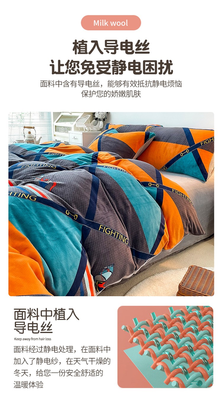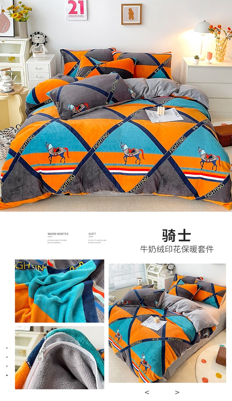商品名称:优彩 2021新款200克高克重印花牛奶绒四件套 骑士