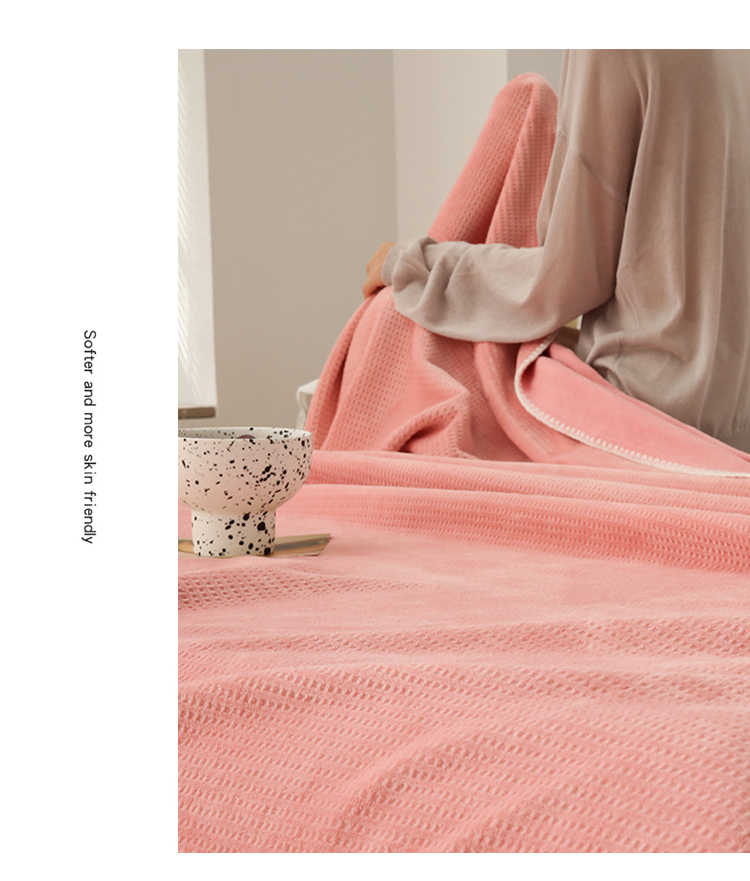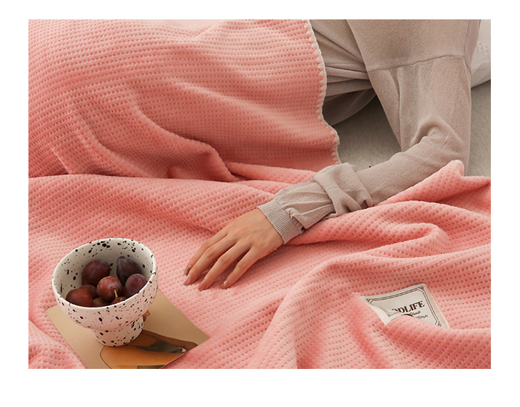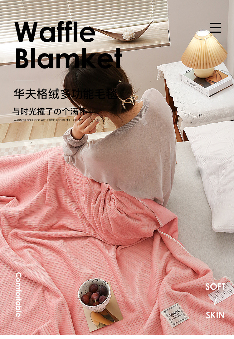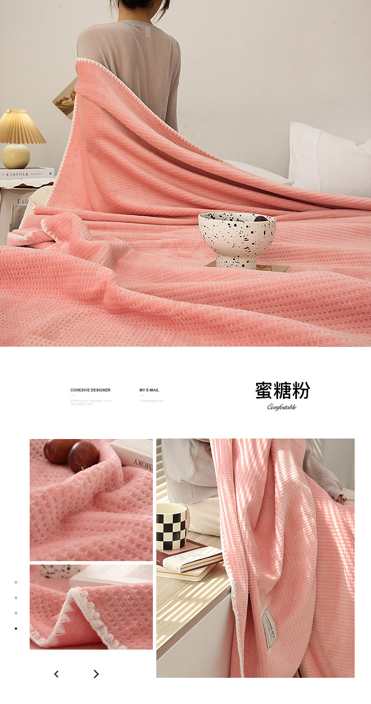 绫韵家纺 牛奶绒双层复合盖毯华夫格毛毯子绒毯休闲毯多功能 蜜糖粉